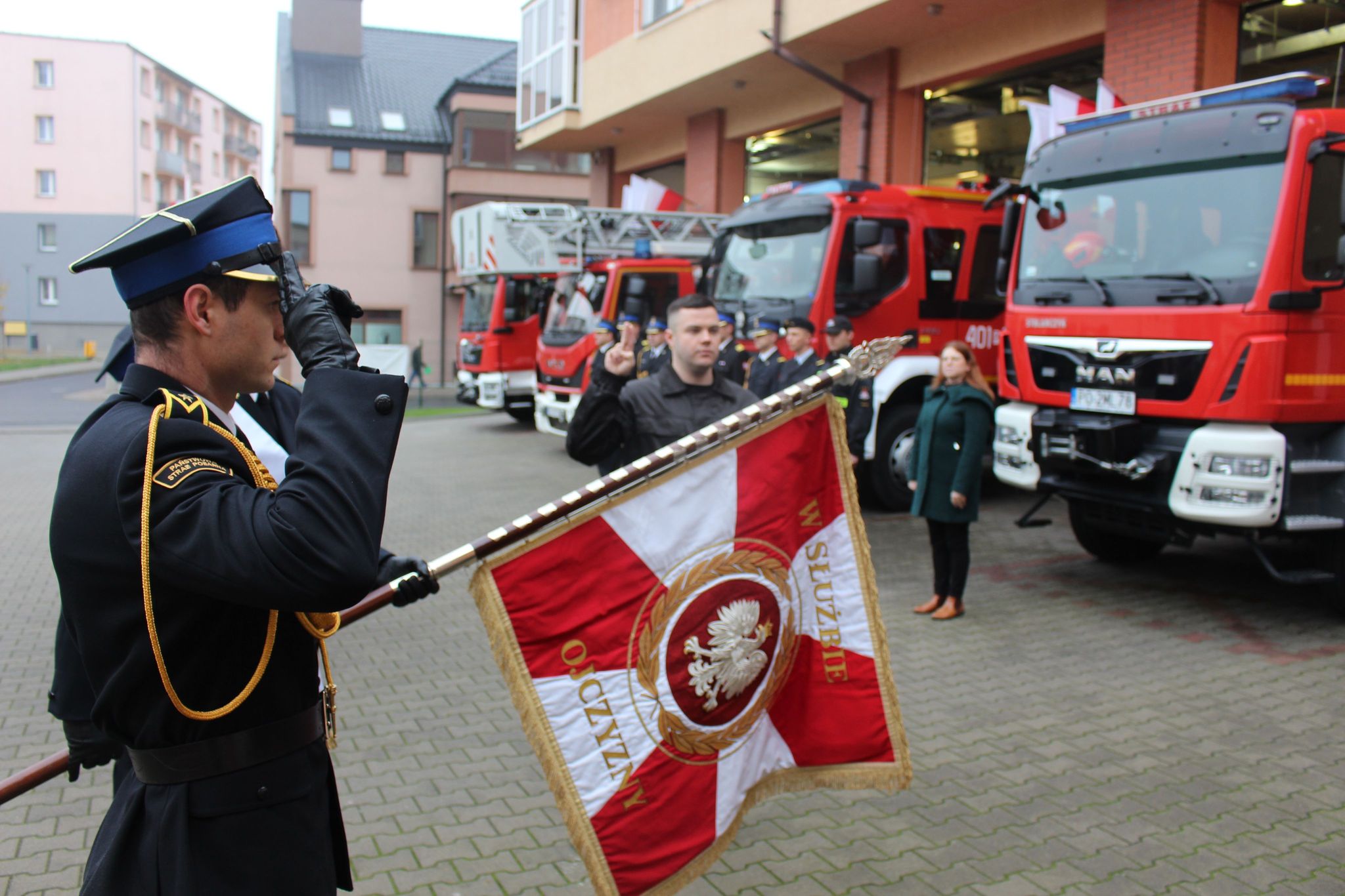 Podczas uroczystości str. Norbert Trzebny złożył ślubowanie. Komendant Powiatowy PSP w Chodzieży złożył gratulacje dla nowego adepta sztuki pożarniczej i życzył mu szybkiego przyswajania nowych wiadomości i umiejętności, awansów oraz tego, by to co do tej pory było marzeniem, teraz stało się spełnieniem planów i zamierzeń.