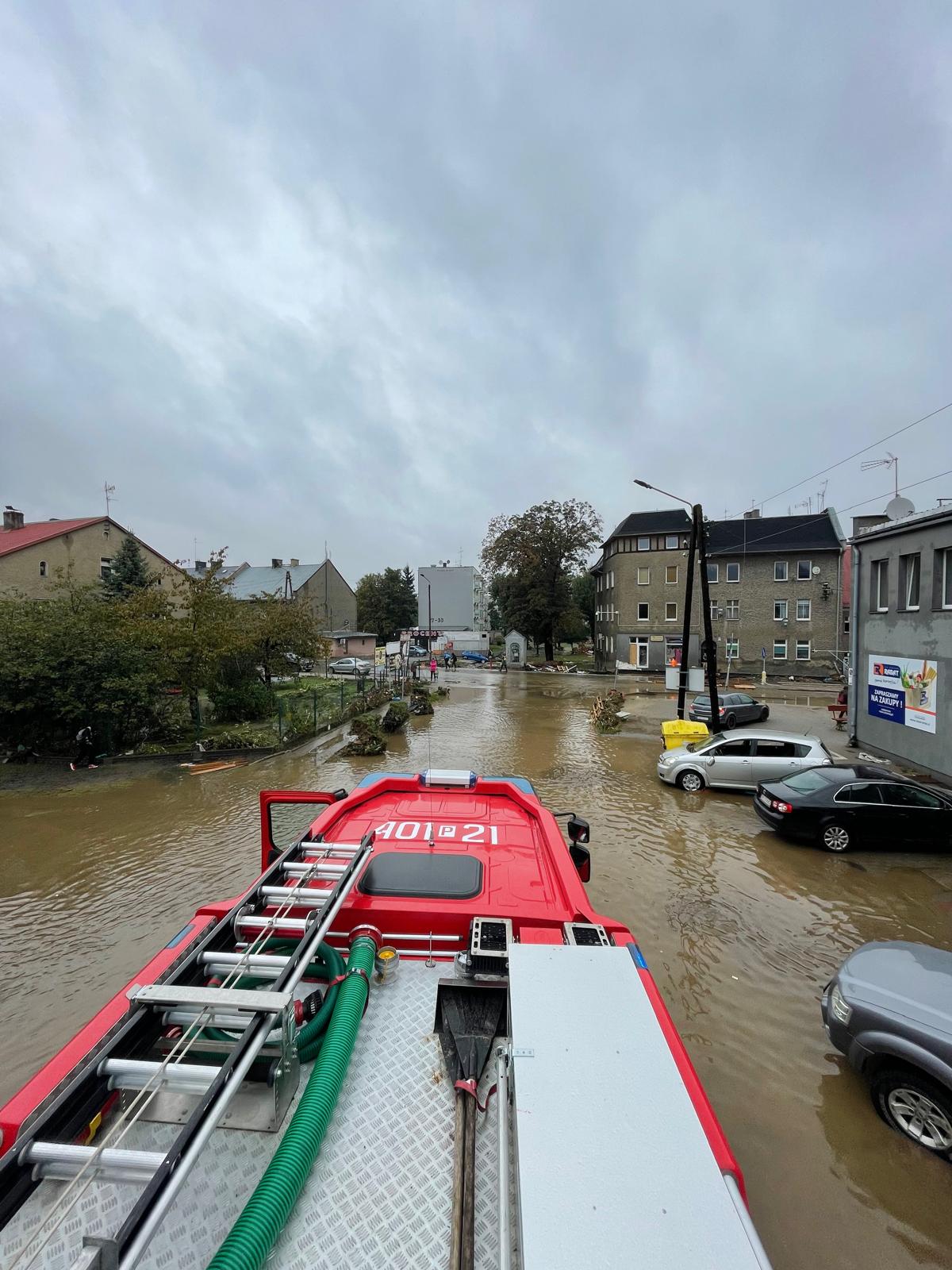 W związku z powodzią, która nawiedziła południowe tereny Polski, pięciu funkcjonariuszy Komendy Powiatowej Państwowej Straży Pożarnej w Chodzieży, kolejną dobę uczestniczą w różnego rodzaju działaniach ratowniczych w okolicy miejscowości Głuchołazy. W jednym z dni, w poniedziałek zastęp Jednostki Ratowniczo - Gaśniczej z Chodzieży został wysłany do miejsca, w którym znajdował się jeden z mostów łączących poszczególne części miasta. Zadaniem zastępu była pomoc mieszkańcom w udrożnieniu mostu dojazdowego i dróg prowadzących do posesji. Dzięki wykonanym działaniom służby ratunkowe mogły dotrzeć do najbardziej dotkniętych powodziom miejsc. Dalszym zadaniem było oczyszczenie ulicy i odpompowanie wody z zalanych mieszkań i domów. W inny dzień – w środę na osiedlach gdzie powódź odcięła dostęp do bieżącej wody, chodziescy strażacy przekazywali ją ze zbiornika samochodu ratowniczego, oraz zgrzewki wody pitnej dla poszkodowanych mieszkańców. W godzinach wieczornych strażacy otrzymali polecenie udania się na wał, który ulegał rozszczelnieniu, prace polegały na wypełnianiu worków z piaskiem oraz budowaniu nowego wału.