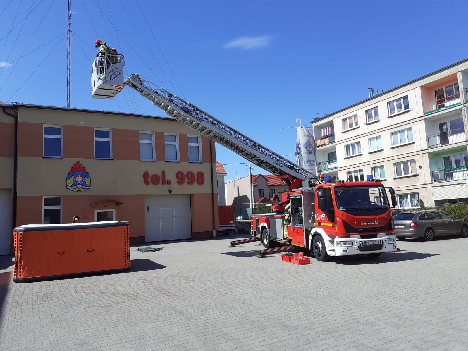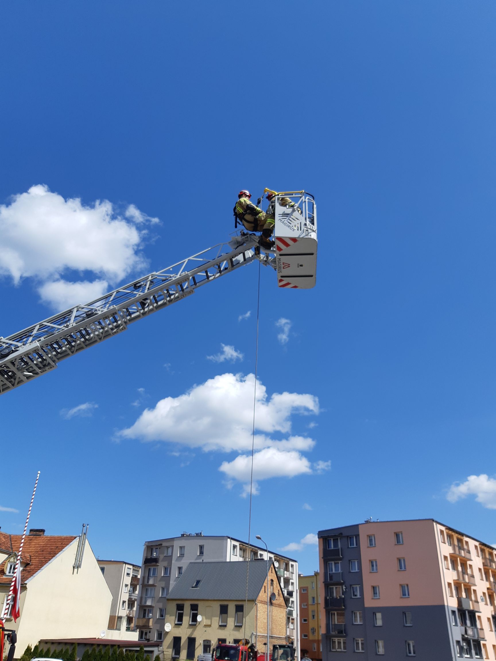 W dniu 6 maja 2021 roku zmiana służbowa JRG Chodzież doskonaliła swoje umiejętności z zakresu ratownictwa wysokościowego. Zadaniem funkcjonariuszy było zbudowanie stanowiska zjazdowego oraz asekuracyjnego, wykonanie zjazdu ratowniczego przy użyciu przyrządu zjazdowego I’D z kosza SD-30, asekuracja ratownika zjeżdżającego oraz klarowanie użytego sprzętu po ćwiczeniach. Ponad to w tym samym dniu strażacy z JRG brali udział w ćwiczeniach z taktyki gaszenia pożarów lasów. Przećwiczono rozwinięcia bojowe oraz budowanie układów do przepompowywania i przetłaczania wody. Porównano czasy tankowania zbiornika wodnego poprzez nasadę zasilającą oraz przez nasadę autopompy.
