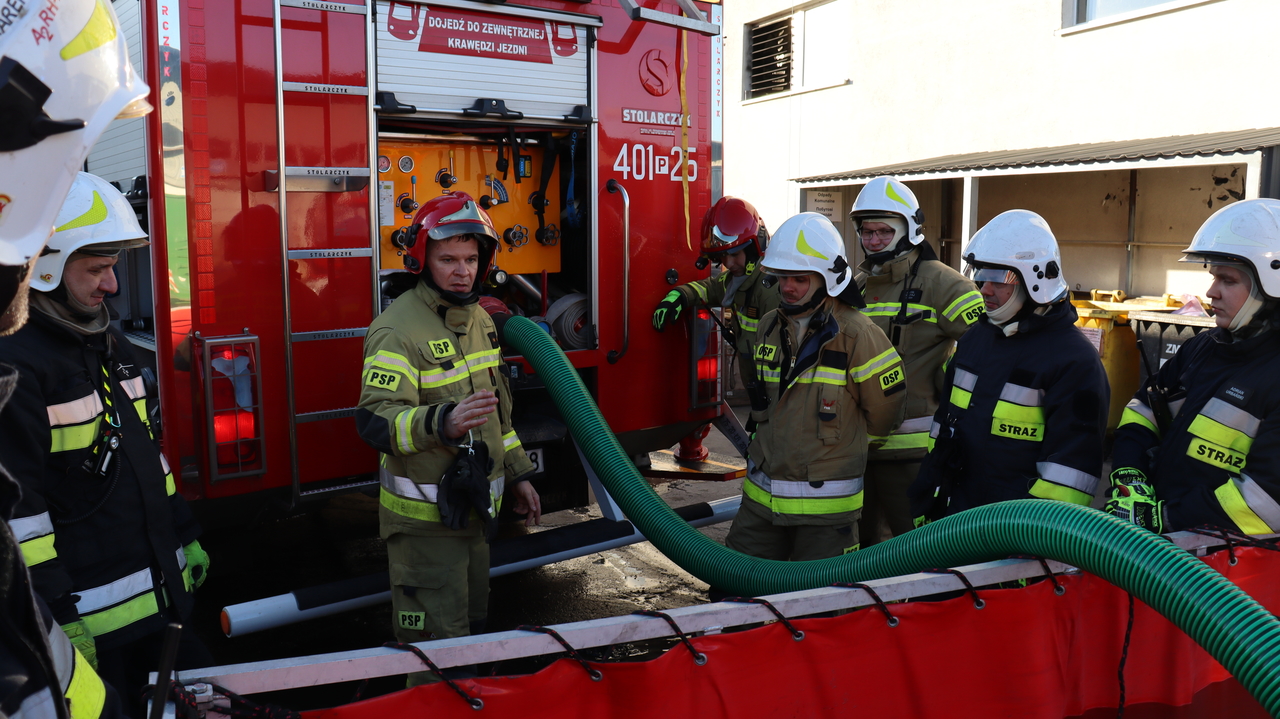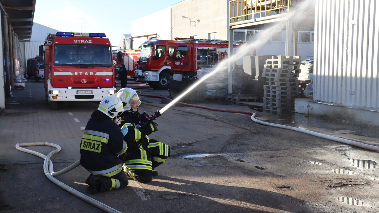 Scenariusz do ćwiczeń zakładał przygniecenie spawającego kontener pracownika firmy, w wyniku czego doszło również do pożaru hali magazynowej, w której uwięzionych zostało dwóch pracowników. Przybyli na miejsce zdarzenia strażacy przystąpili do uwalniania osoby przygniecionej kontenerem przy pomocy poduszek pneumatycznych, poszukiwania osób zagonionych w hali magazynowej, gaszenia pożaru oraz organizacji zaopatrzenia wodnego z sieci hydrantowej na terenie zakładu. Po zakończonych epizodach ratowniczych, funkcjonariusze z JRG PSP w Chodzieży przeprowadzili warsztaty doskonalące z obsługi pomp i bufora wodnego dla kierowców operatorów z jednostek OSP.