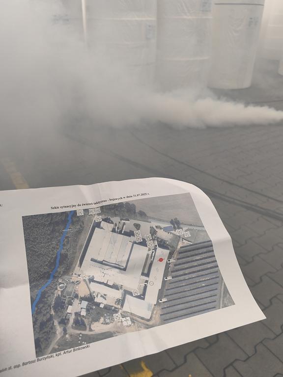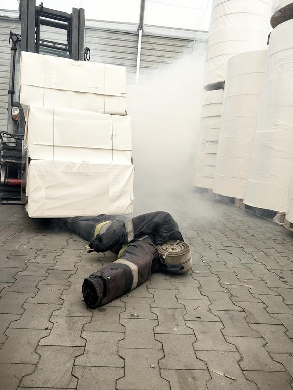 W czwartek 31 lipca 2025 r., około godz. 10:50 do Stanowiska Kierowania Komendanta Powiatowego PSP w Chodzieży, wpłynęło zgłoszenie o silnym zadymieniu w magazynie wyrobów gotowych w fabryce papieru w Margoninie na ul. Strzeleckiej. Kierownik zakładu zarządził ewakuację wszystkich pracowników firmy. Po ewakuacji w miejsce zbiórki nie stawiło się jednak dwóch pracowników. Po krótkim czasie jeden z pracowników (bardzo zdenerwowany) przekazuje informację, że przy ewakuacji pracował na wózku widłowym w magazynie, w którym było zadymienie i że chyba kogoś potrącił, ale nie jest pewien.