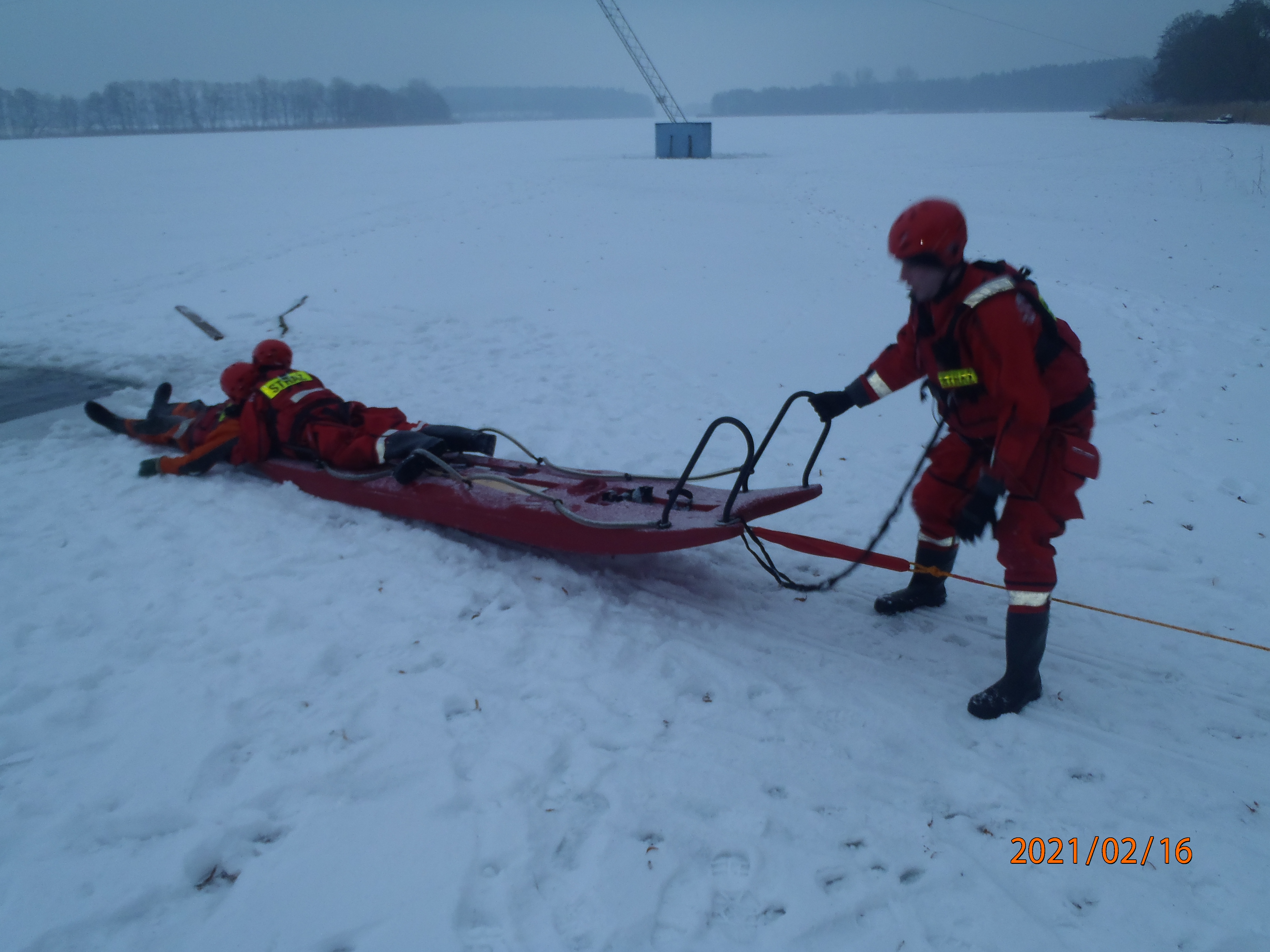 W dniu 16 lutego 2021 roku na Jeziorze Margonińskim w Margoninie odbyły się ćwiczenia z zakresu ratownictwa wodno-lodowego.
