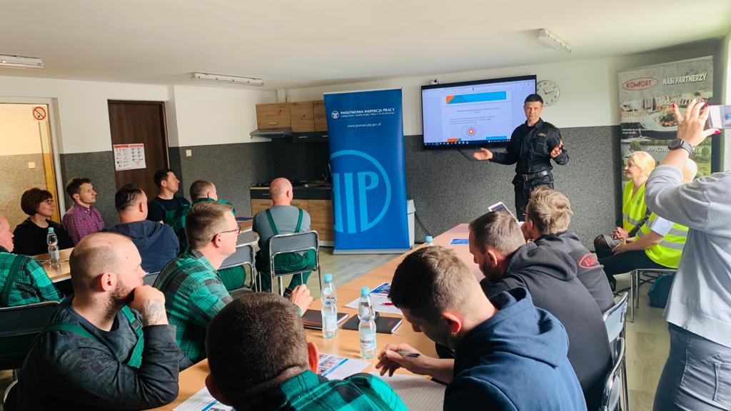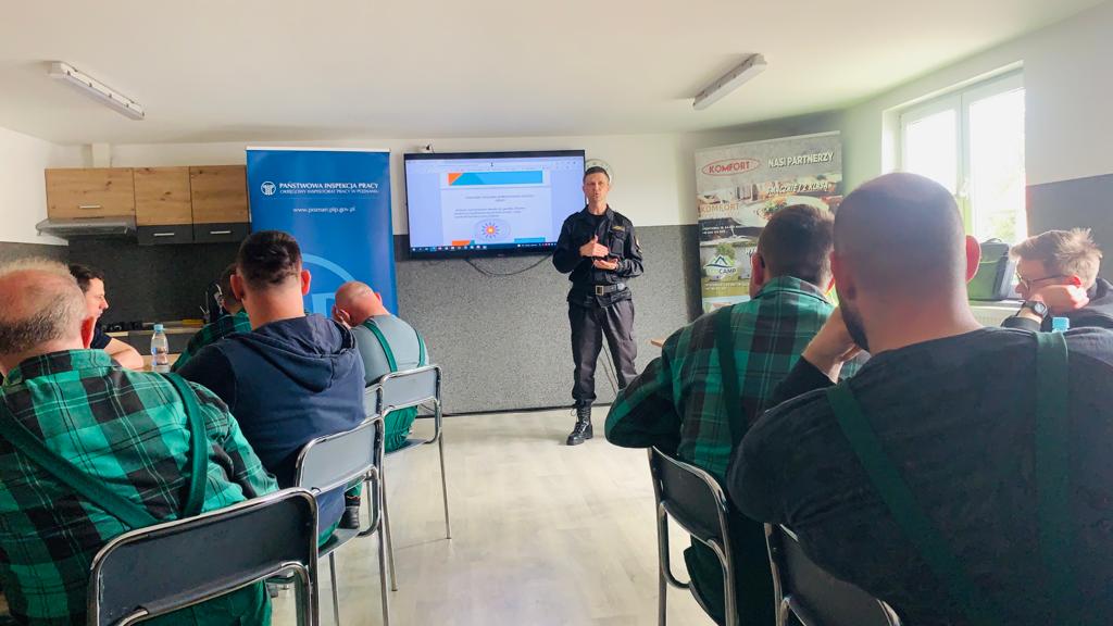W miesiącu kwietniu br. rozpoczęły się Wielkopolskie Obchody Dnia Bezpieczeństwa i Ochrony Zdrowia w Pracy organizowane przez Państwową Inspekcję Pracy. Czynnie w działania edukacyjne włączyła się Komenda Powiatowa Państwowej Straży Pożarnej w Chodzieży, uczestnicząc wspólnie z Państwową Inspekcją Pracy w spotkaniu z pracownikami zakładu w miejscowości Budzyń na osiedlu Cechowym, na którym znajduje się kilkanaście zakładów produkcyjnych. W zakładach zatrudniających co najmniej 50 pracowników odbyły się zajęcia edukacyjne, którym celem było upowszechnienie zasad bezpieczeństwa i ochrony zdrowia w zakładach pracy w tym bezpieczeństwa pożarowego, poprzez zainteresowanie i czynny udział pracowników w inicjatywach na rzecz poprawy bezpieczeństwa.