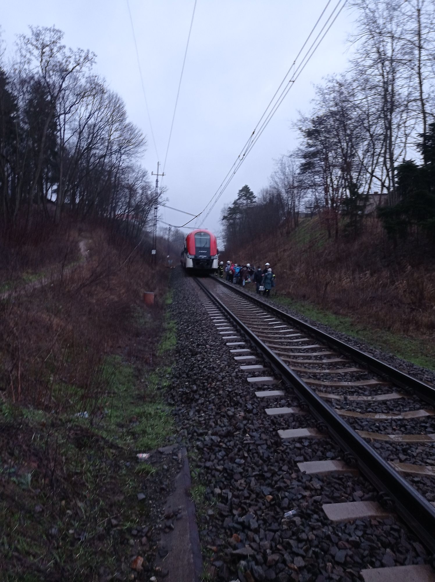 Zadysponowano zastępy z Jednostki Ratowniczo - Gaśniczej PSP z Chodzieży oraz OSP Chodzież. Po przybyciu na miejsce zdarzenia pierwszego zastępu straży pożarnej stwierdzono, że linia trakcyjna została zerwana przez powalone drzewo, a pociąg pasażerski PKP relacji Piła - Leszno stał na torowisku.