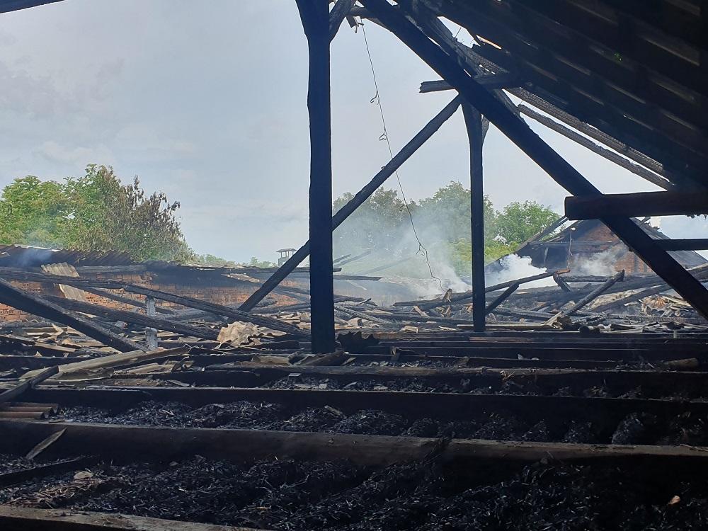 Dalsze działania polegały na dogaszaniu tlących się materiałów oraz usuwaniu ich na zewnątrz budynku, a także wykonywaniu prac rozbiórkowych elementów budowlanych celem dogaszenia pożaru. W wyniku pożaru spaleniu lub zniszczeniu uległo: dach budynku, strop drewniany oraz składowana na poddaszu nieużytkowym słoma luzem lub w balotach (łącznie około jedna tona słomy). Zniszczeniu uległo również pomieszczenie chlewni znajdujące się pod spalonym poddaszem.
