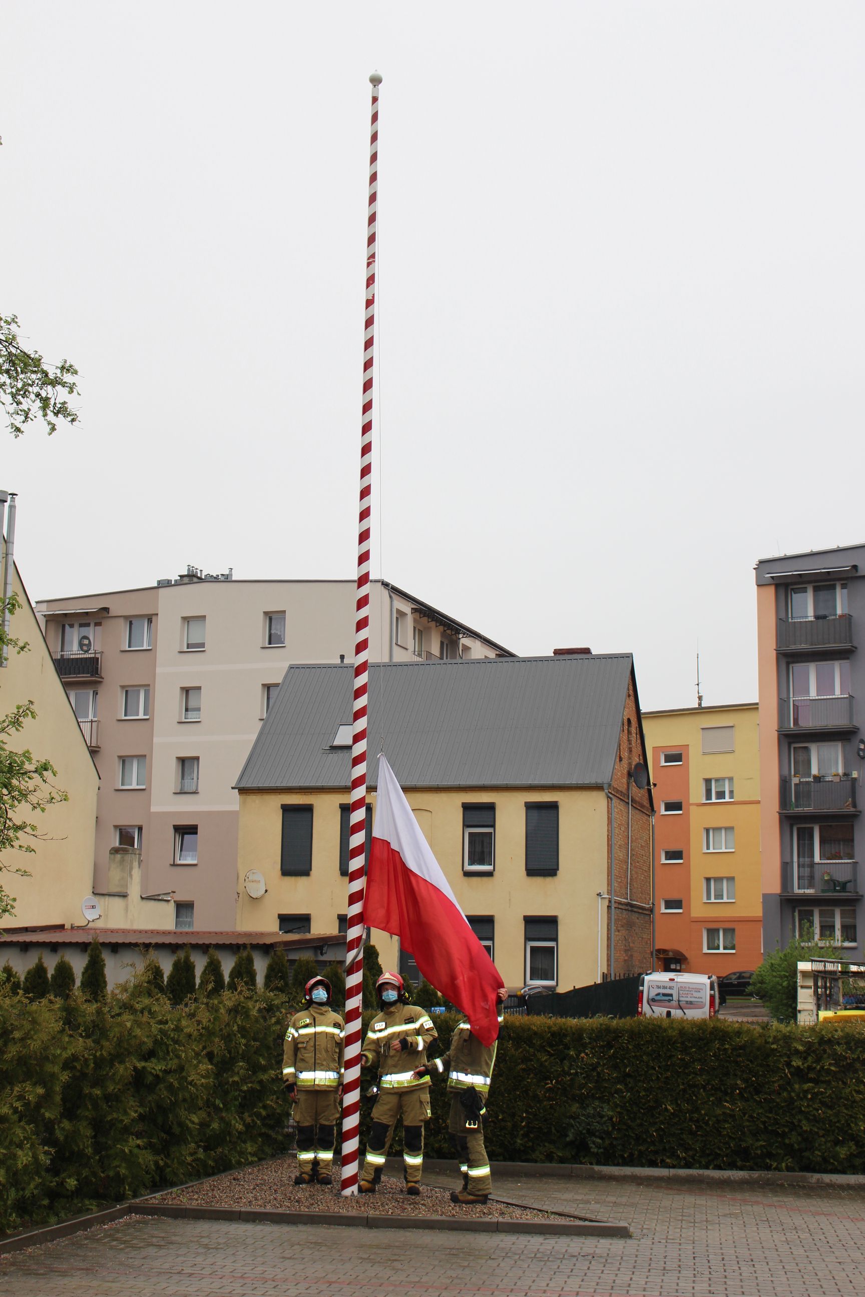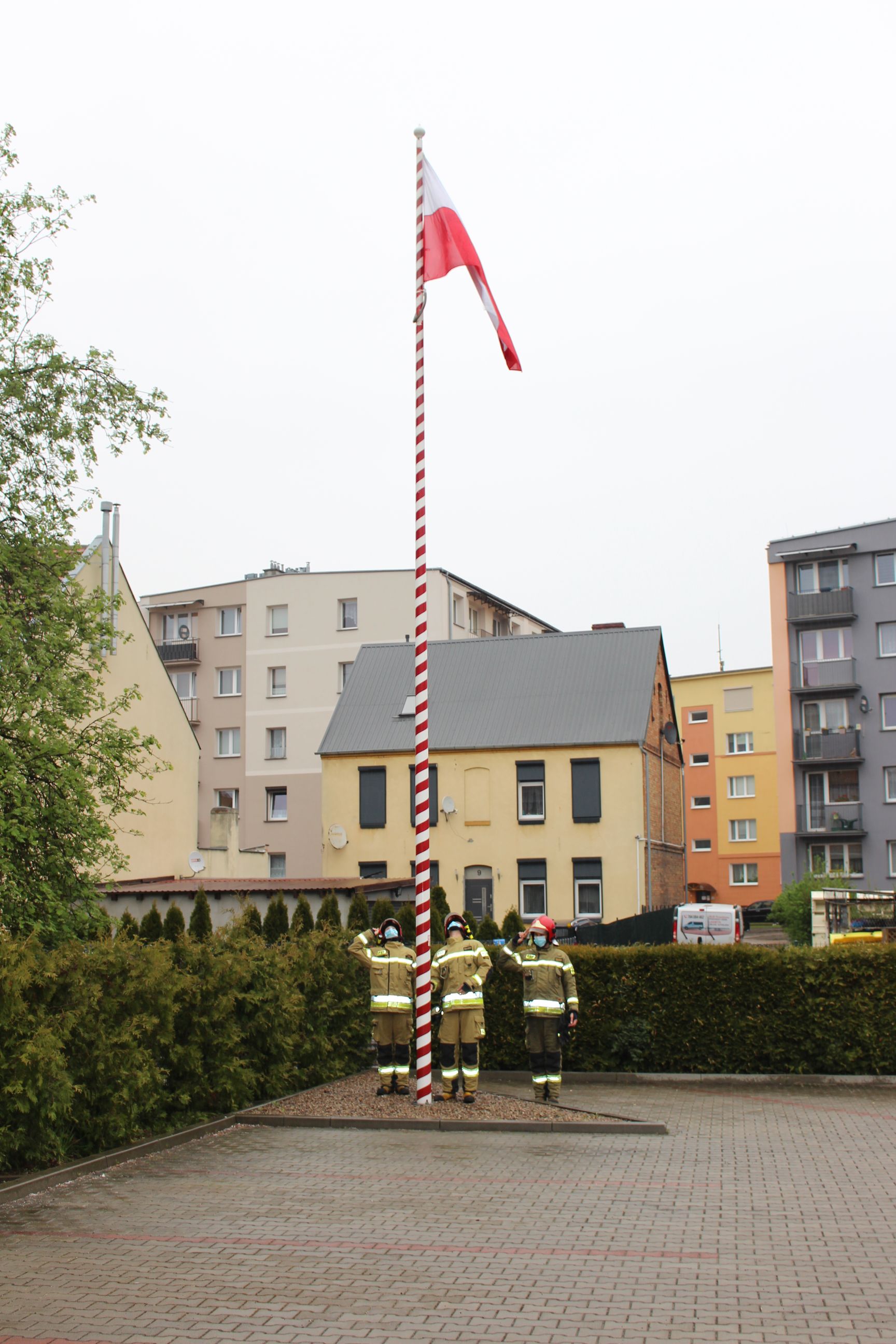 Podczas uroczystego apelu nastąpiło uroczyste podniesienie flagi państwowej na maszt. W związku z sytuacją epidemiczną w uroczystości wzięła udział tylko zmiana służbowa wraz z Dowódcą Jednostki Ratowniczo - Gaśniczej Państwowej Straży Pożarnej w Chodzieży.