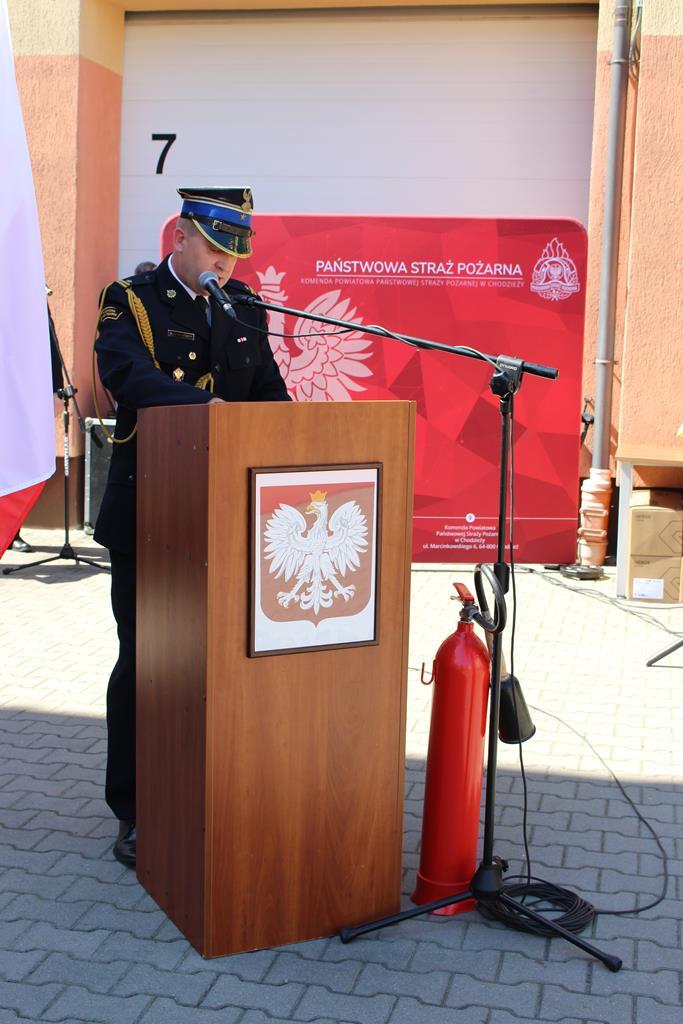 W uroczystości wzięli udział funkcjonariusze oraz pracownicy cywilni Komendy Powiatowej Państwowej Straży Pożarnej w Chodzieży, druhowie z jednostek Ochotniczych Straży Pożarnych powiatu chodzieskiego ze szczególnie liczna reprezentacją OSP Chodzież, emerytowani funkcjonariusze PSP oraz zaproszeni goście, których przywitał pełniący obowiązki Komendanta Powiatowy PSP w Chodzieży mł. bryg. Maciej Zwierzykowski.