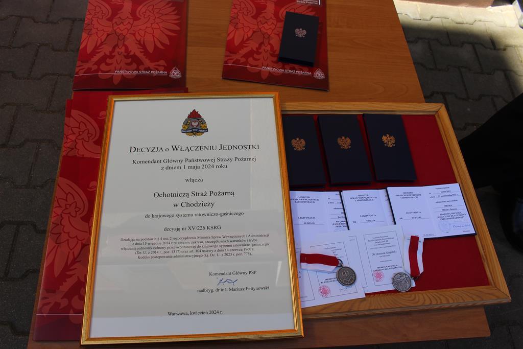 Szczególnie uroczystą chwilą było wręczenie decyzji włączenia Jednostki Ochotniczej Straży Pożarnej w Chodzieży do krajowego systemu ratowniczo-gaśniczego.