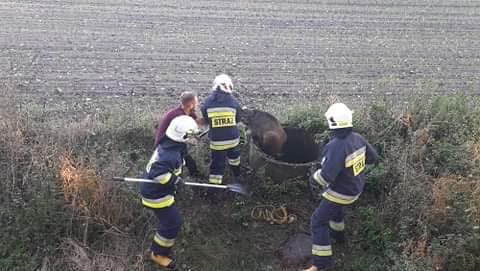 Na miejsce zdarzeniu został zadysponowany zastęp z OSP Margonin. Strażacy wspólnie z pracownikiem fundacji „Zawsze razem” (wspierającą działalność zmierzającą do ochrony zwierząt) wydobyli zwierzę przy pomocy pętli. Dzik po oswobodzeniu oddalił się. Ratownicy JOP zabezpieczyli taśmą ostrzegawczą studzienkę przed wpadnięciem osób postronnych.