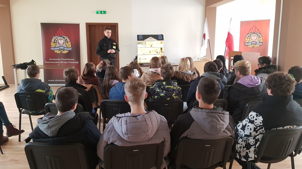 W miesiącu marcu odbywają się spotkania edukacyjne dla młodzieży powiatu chodzieskiego w siedzibie JRG PSP w Chodzieży.