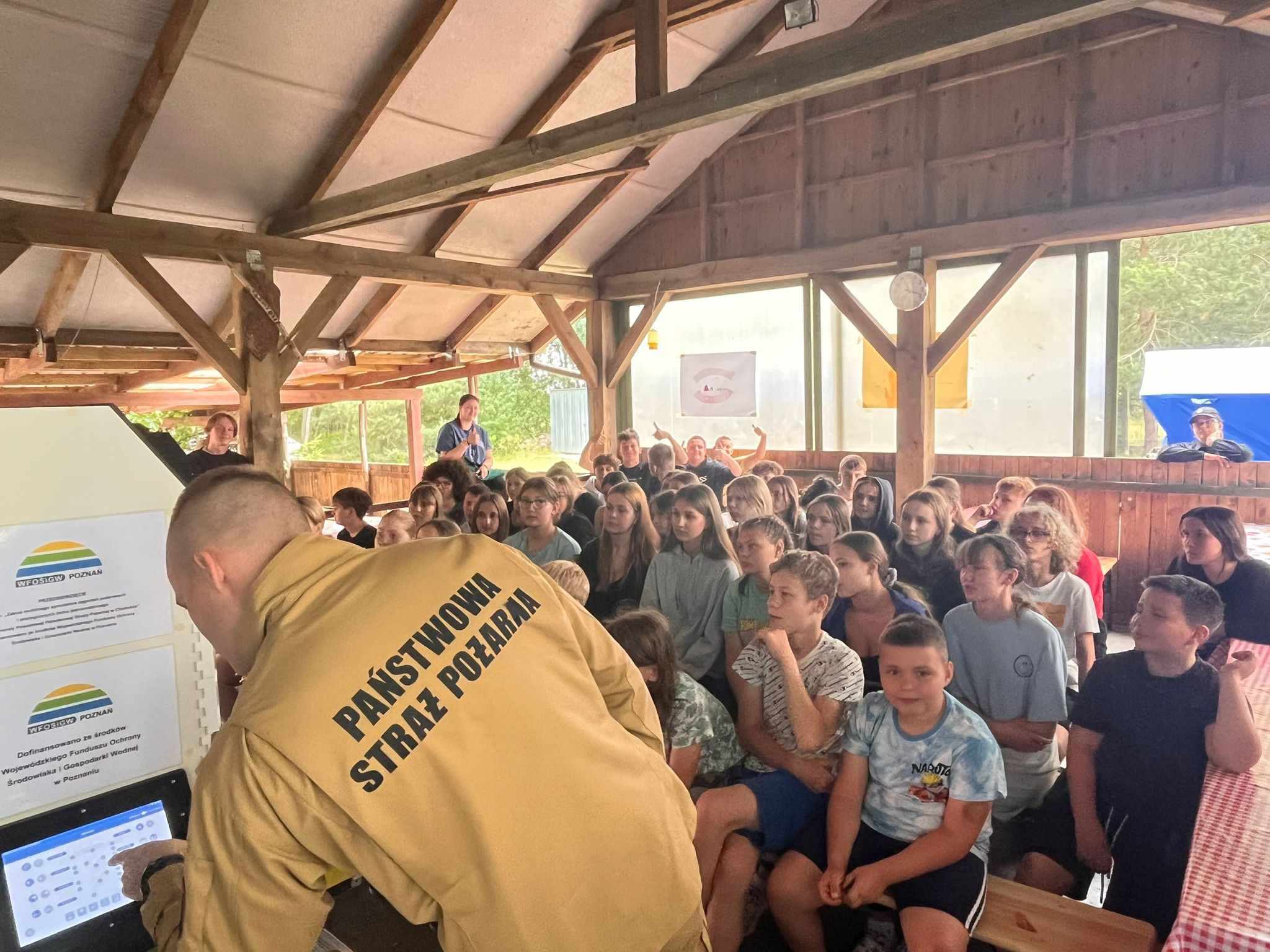 Celem wyjazdu było omówienie z uczestnikami obozu zagadnień związanych z bezpieczeństwem. Funkcjonariusze PSP poruszyli tematy bezpieczeństwa pożarowego: zasad gaszenia pożarów w zarodku przy użyciu gaśnic, gaszenia odzieży na palącej się osobie, postępowania z palącym się tłuszczem. Omówiono zagrożenia związane z tlenkiem węgla i zachęcono do wyposażenia gospodarstw domowych w czujniki czadu i gaśnice. Na koniec zapoznano uczestników z procesem rekrutacji do Państwowej Straży Pożarnej oraz przedstawiono poszczególne ścieżki kariery zawodowej. W spotkaniu, które miało miejsce w miejscowości Kamienica (powiat wągrowiecki) brało udział 56 dzieci oraz 4 opiekunów.