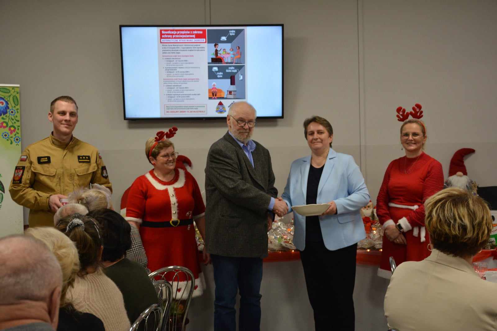 W trakcie spotkania wśród uczestników rozlosowano czujki tlenku węgla lub czujki dymu, co spotkało się z dużym zainteresowaniem i entuzjazmem. Czujki wręczyła obecna również na spotkaniu Pani Wójt Gminy Chodzież Kamila Szejner.
