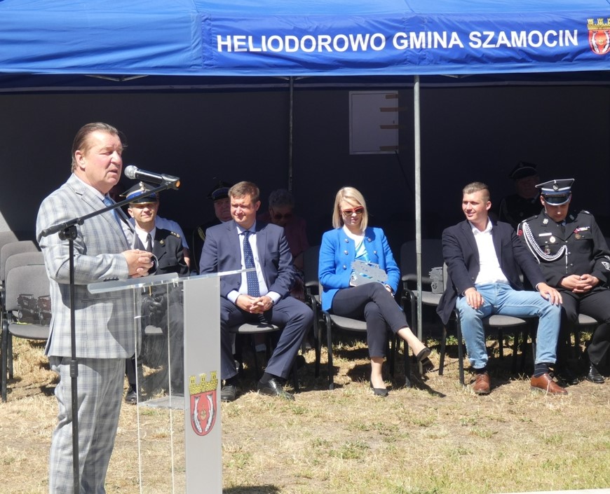 W uroczystości wzięli udział zaproszeni goście, w tym m.in. Poseł na Sejm RP Pani Marta Kubiak, Poseł na Sejm RP Pan Marcin Porzucek, były komendant wojewódzki Państwowej Straży Pożarnej w Pile st. bryg. w st. spocz. Andrzej Waligórski, Zastępca Komendanta Powiatowego Państwowej Straży Pożarnej w Chodzieży bryg. Leszek Naranowicz, Burmistrz Miasta i Gminy Szamocin Pan Eugeniusz Kucner, Pełnomocnik Suwerennej Polski Okręg Pilski Pan Daniel Kufel, Prezes Zarządu Oddziału Powiatowego Związku Ochotniczych Straży Pożarnych Rzeczypospolitej Polskiej w Chodzieży dh Michał Stelter, Prezes Zarządu Miejsko-Gminnego Związku Ochotniczych Straży Pożarnych Rzeczpospolitej Polskiej w Szamocinie dh Eugeniusz Knach, Komendant Miejsko – Gminny OSP Gminy Szamocin dh Remigiusz Kobus oraz Nadleśniczy Nadleśnictwa Podanin Pan Jacek Kulpiński. Obecnych na uroczystości gości oraz mieszkańców Heliodorowa i druhów przywitał uroczyście Prezes jednostki OSP Heliodorowo dh Wojciech Kemnitz.