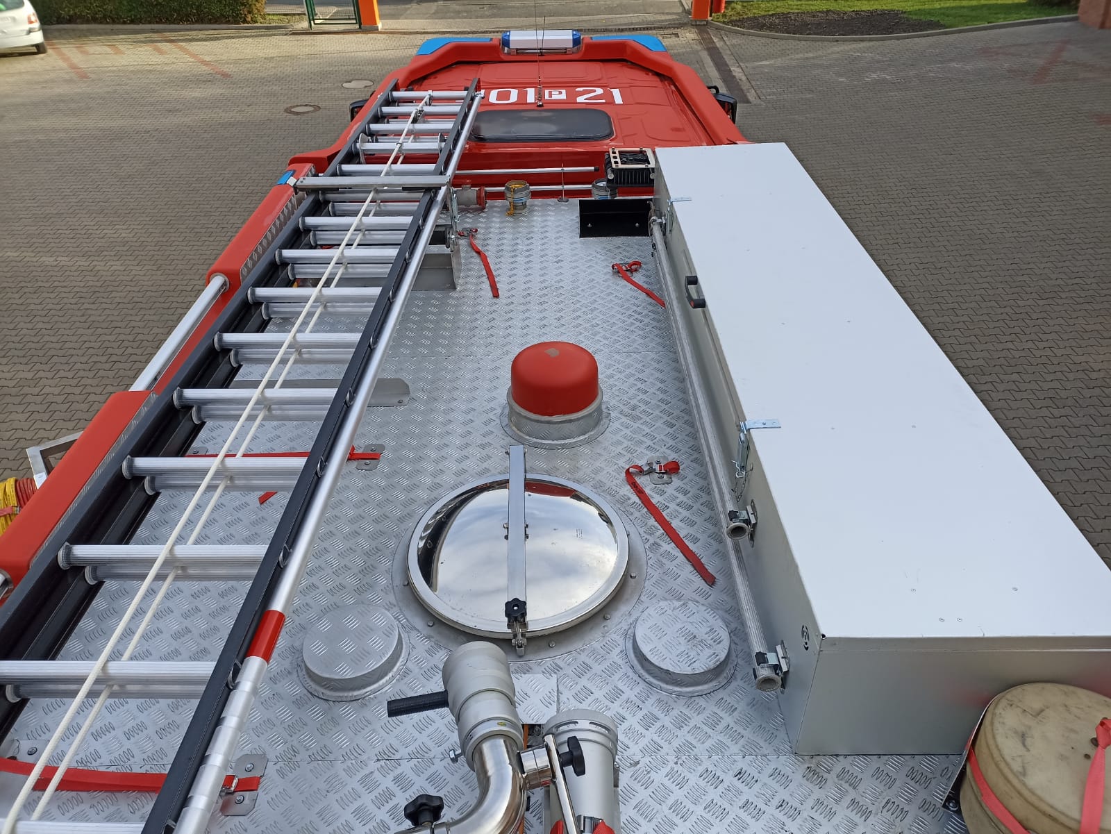 Oprócz sprzętu posiada zbiornik o pojemności 2,5 m3 wody i autopompę o wydajnosci 1600 l/min. Został dodatkowo wyposażony w system piany sprężonej, która znacznie poprawia skuteczność gaśniczą.