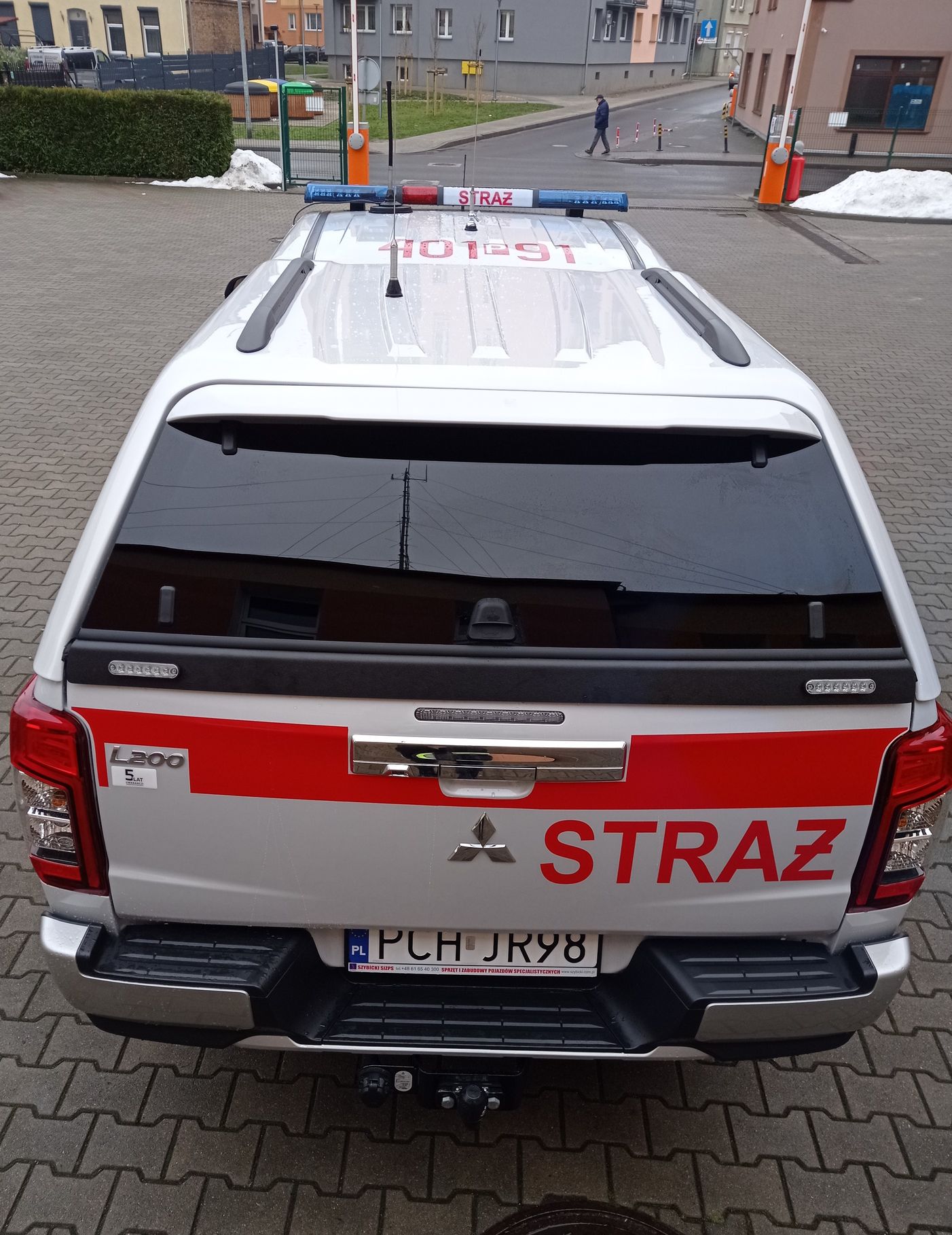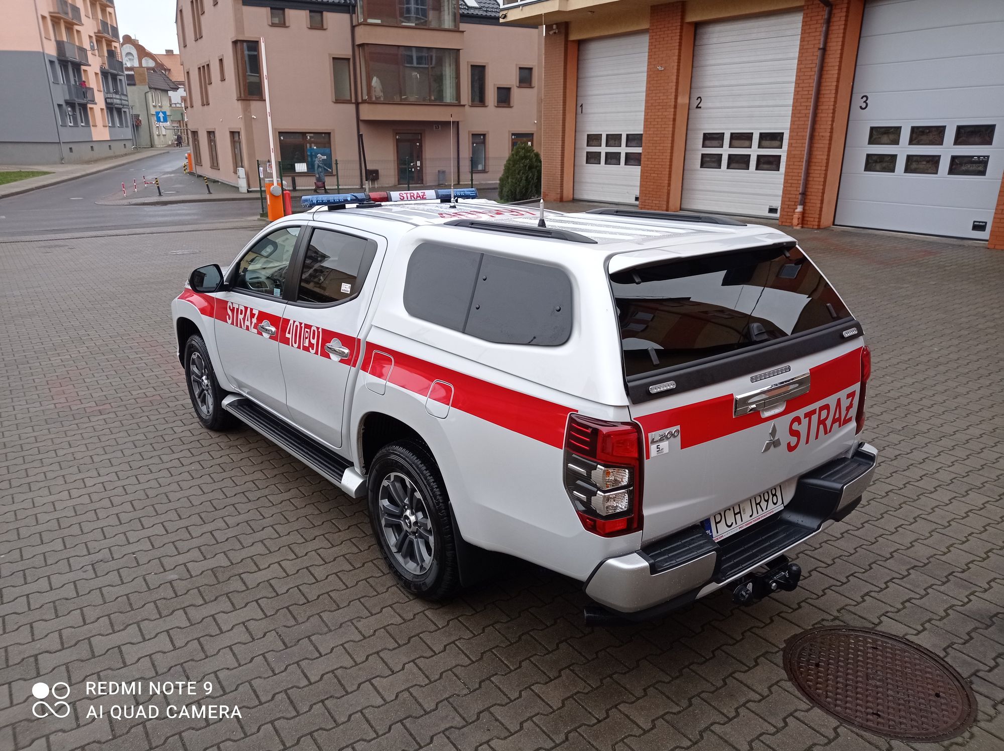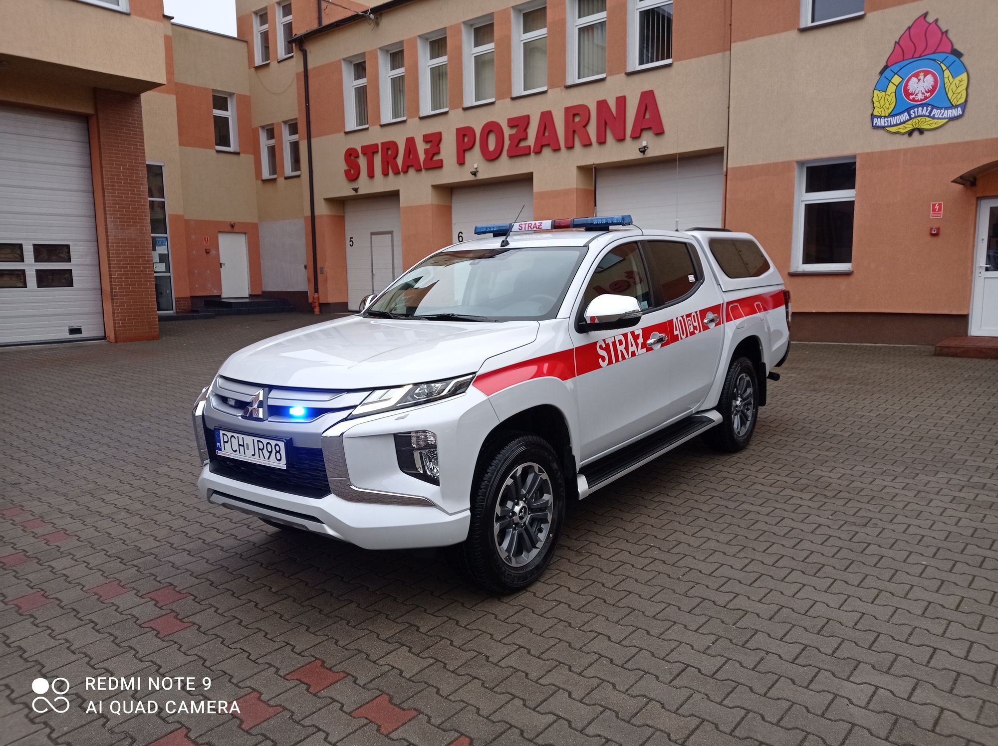 Komenda Powiatowa Państwowej Straży Pożarnej w Chodzieży, doposażona została w nowy samochód specjalny ratowniczy z napędem terenowym MITSUBISHI.