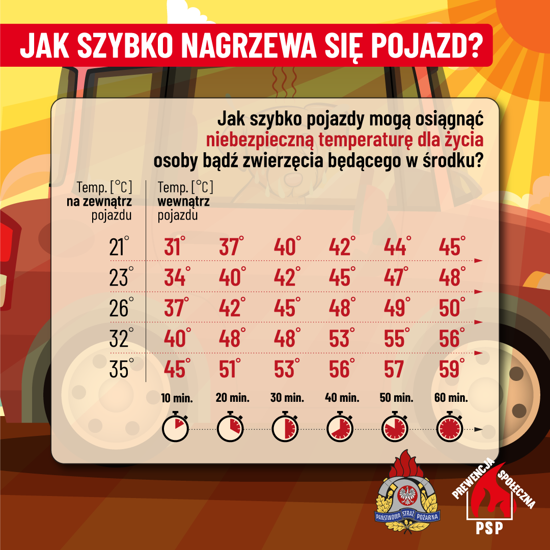 Latem, gdy temperatura na zewnątrz jest wysoka, wnętrze samochodu może szybko przekształcić się w piekarnik, stanowiąc śmiertelne zagrożenie dla pozostawionych w nim dzieci i zwierząt. Przy temperaturze zewnętrznej wynoszącej 26°C, wnętrze samochodu nagrzewa się w zastraszającym tempie: