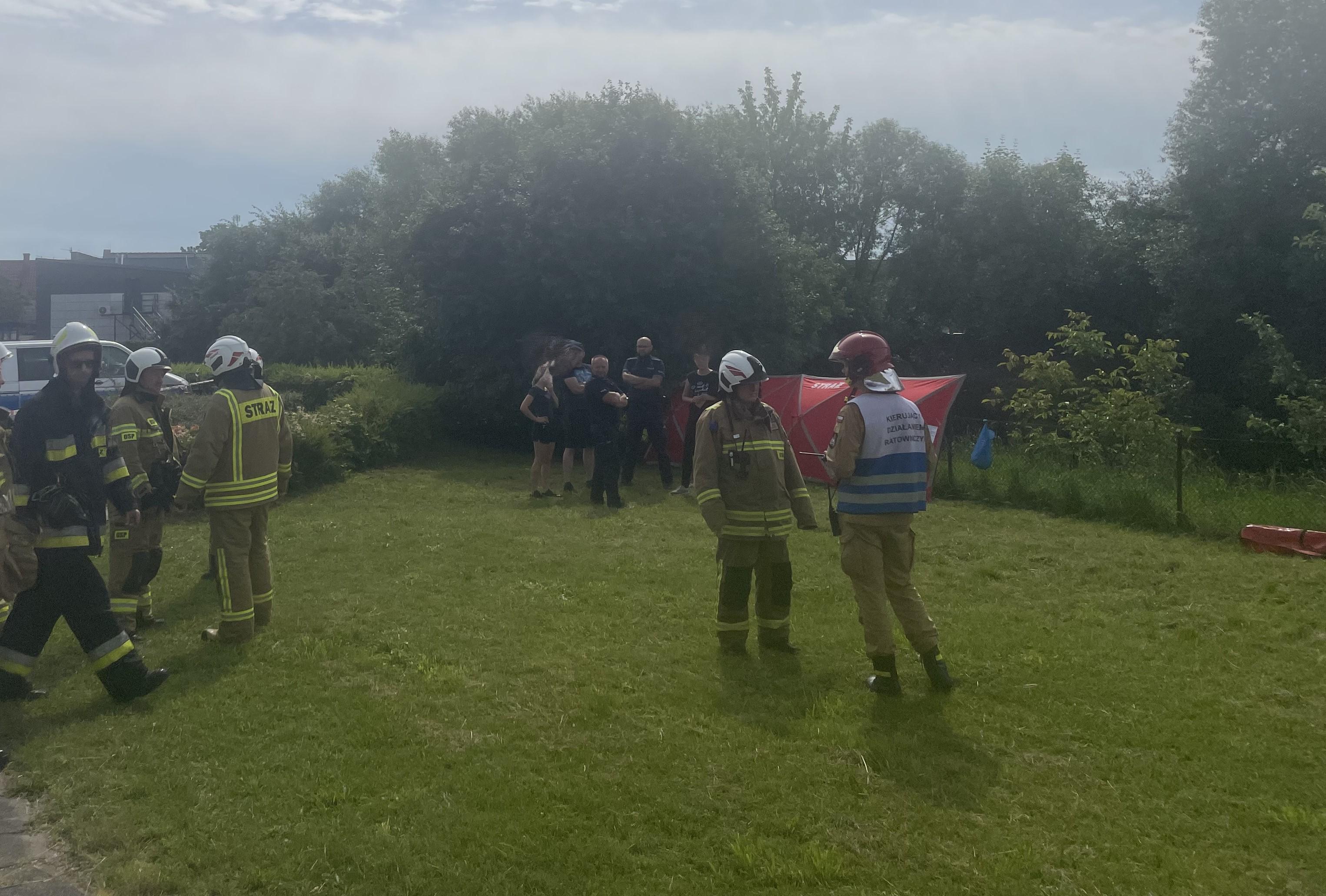 Działania straży pożarnej w pierwszej kolejności polegały na zabezpieczeniu miejsca zdarzenia oraz wyciągnięciu ciała na zewnątrz. Ze względu na stan osoby odstąpiono od udzielania kwalifikowanej pierwszej pomocy. Na miejsce zdarzenia przybyła Policja, która ustala przyczynę zdarzenia.