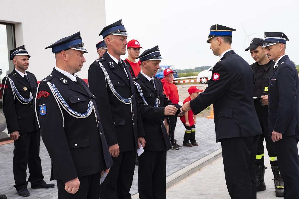 Podczas oficjalnej części uroczystości zaproszeni goście gratulowali jednostce nowej remizy oraz podkreślali profesjonalizm i ciągłą gotowość strażaków Ochotniczej Straży Pożarnej w Próchnowie do niesienia pomocy potrzebującym.