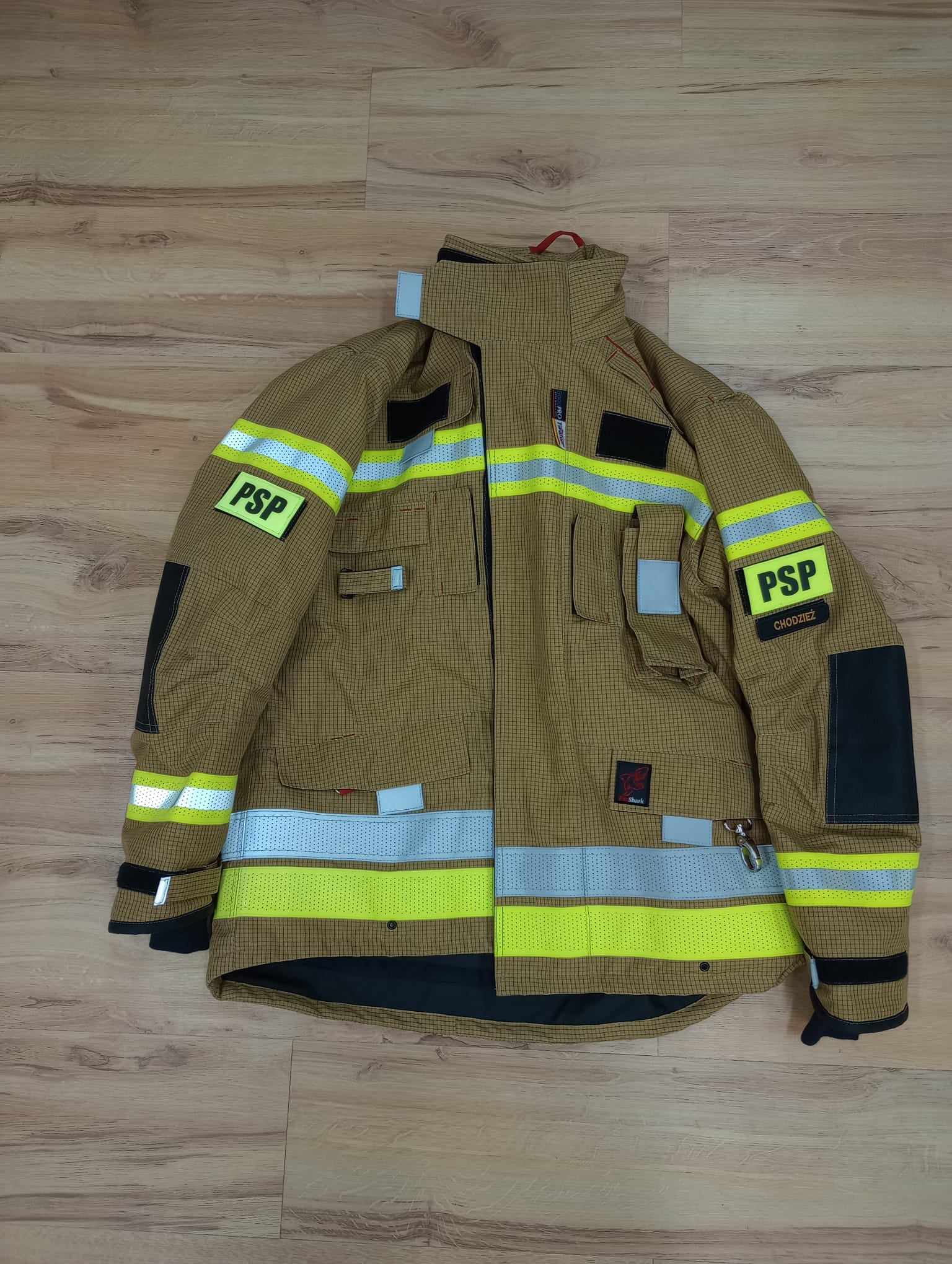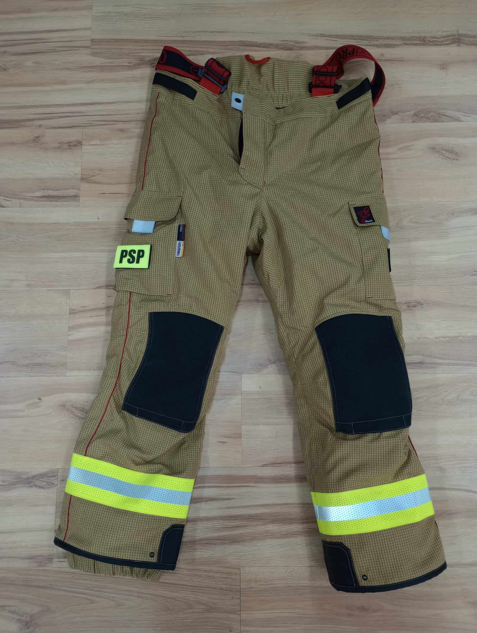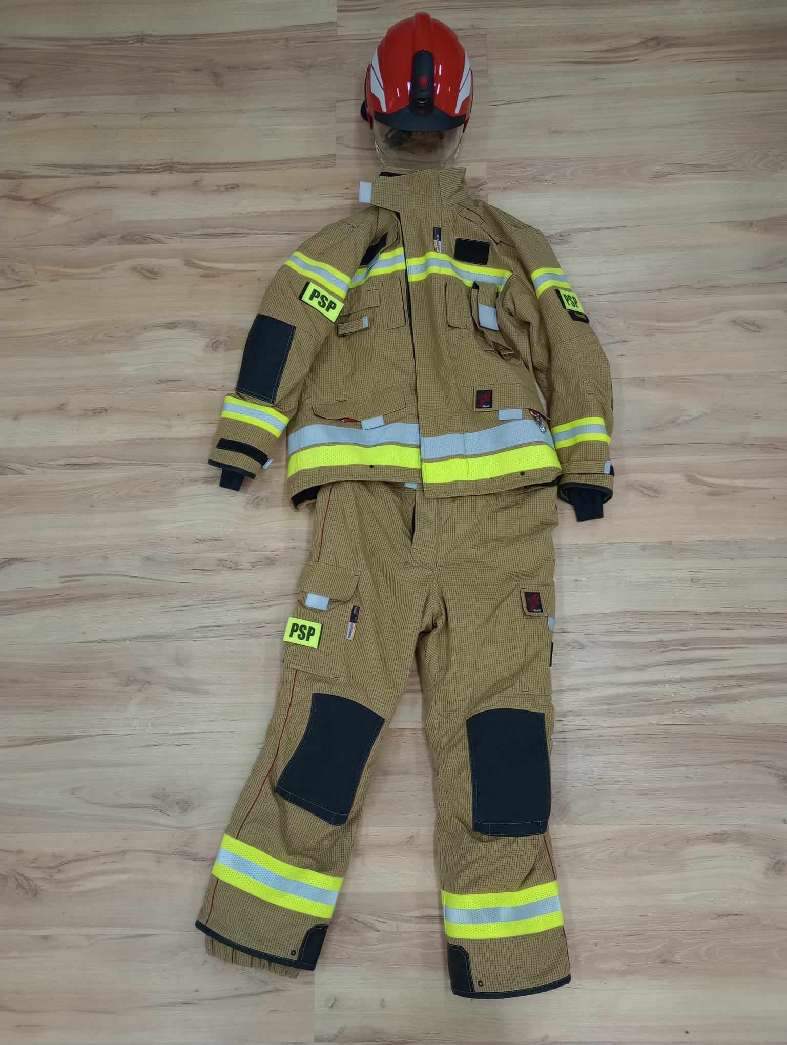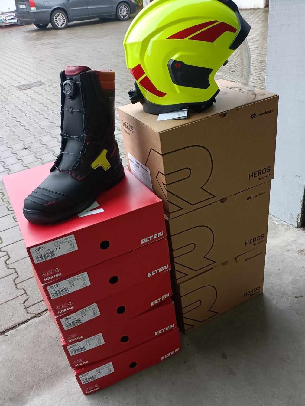 W ramach w/w zadania zakupione zostało wyposażenie oraz środki ochrony indywidualnej w postaci: dwóch kompletów ubrań specjalnych wraz z dwoma hełmami strażackimi, pięciu par butów specjalnych, 10 sztuk kominiarek specjalnych, 10 par rękawic specjalnych, 45 sztuk odzieży trudnopalnej termoaktywnej o właściwościach antystatycznych oraz zestaw wysokociśnieniowych pneumatycznych poduszek powietrznych.