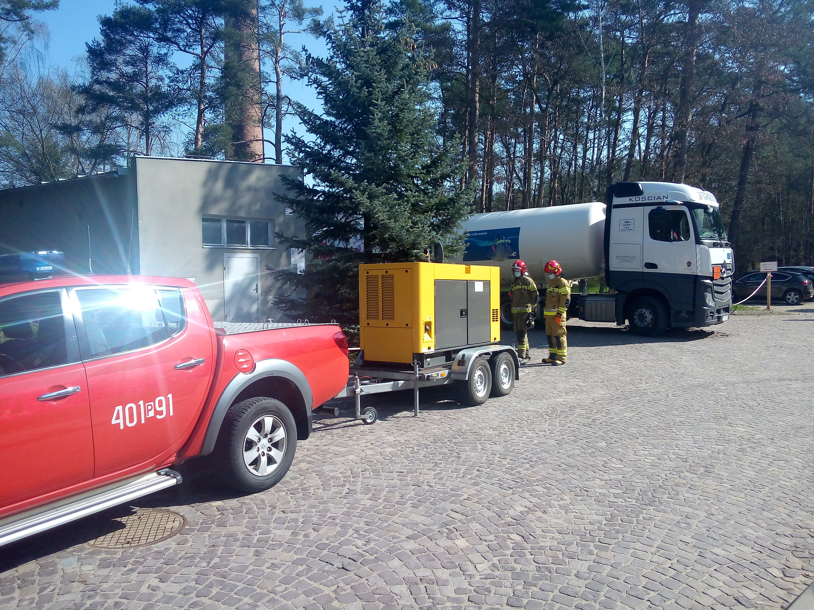 Zadysponowano do zdarzenia zastępy z Jednostki Ratowniczo - Gaśniczej PSP z Chodzieży wraz z przewoźnym agregatem prądotwórczym o dużej mocy należącym do Starostwa Powiatowego w Chodzieży. Działania straży pożarnej polegały na zabezpieczeniu miejsca zdarzenia oraz podłączeniu i uruchomieniu agregatu prądotwórczego w celu wspomagania procesu tankowania ciekłego tlenu medycznego do zbiorników zewnętrznych. Podczas działań przepompowano zostało ok. 3,5 tony tlenu medycznego. W działaniach trwających godzinę brały udział 3 zastępy straży pożarnej (6 strażaków).