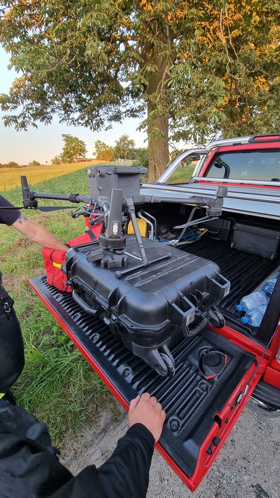 W poszukiwania zaangażowane były siły i środki Policji, JRG Chodzież, OSP Chodzież oraz OSP Zacharzyn. Dodatkowo na miejsce zdarzenia przybył samochód z JRG 6 Poznań, który na swoim wyposażeniu posiadał specjalistyczny dron wyposażony w kamerę termowizyjną. Po 2 godzinach poszukiwań w trudnym terenie, strażacy z JRG Chodzież wspólnie z funkcjonariuszką Policji odnaleźli poszukiwaną osobę, której niezwłocznie udzielono pierwszej pomocy. Na miejsce zdarzenia przybył Zespół Ratownictwa Medycznego, któremu przekazano poszkodowanego.