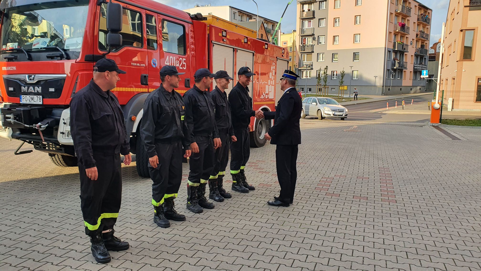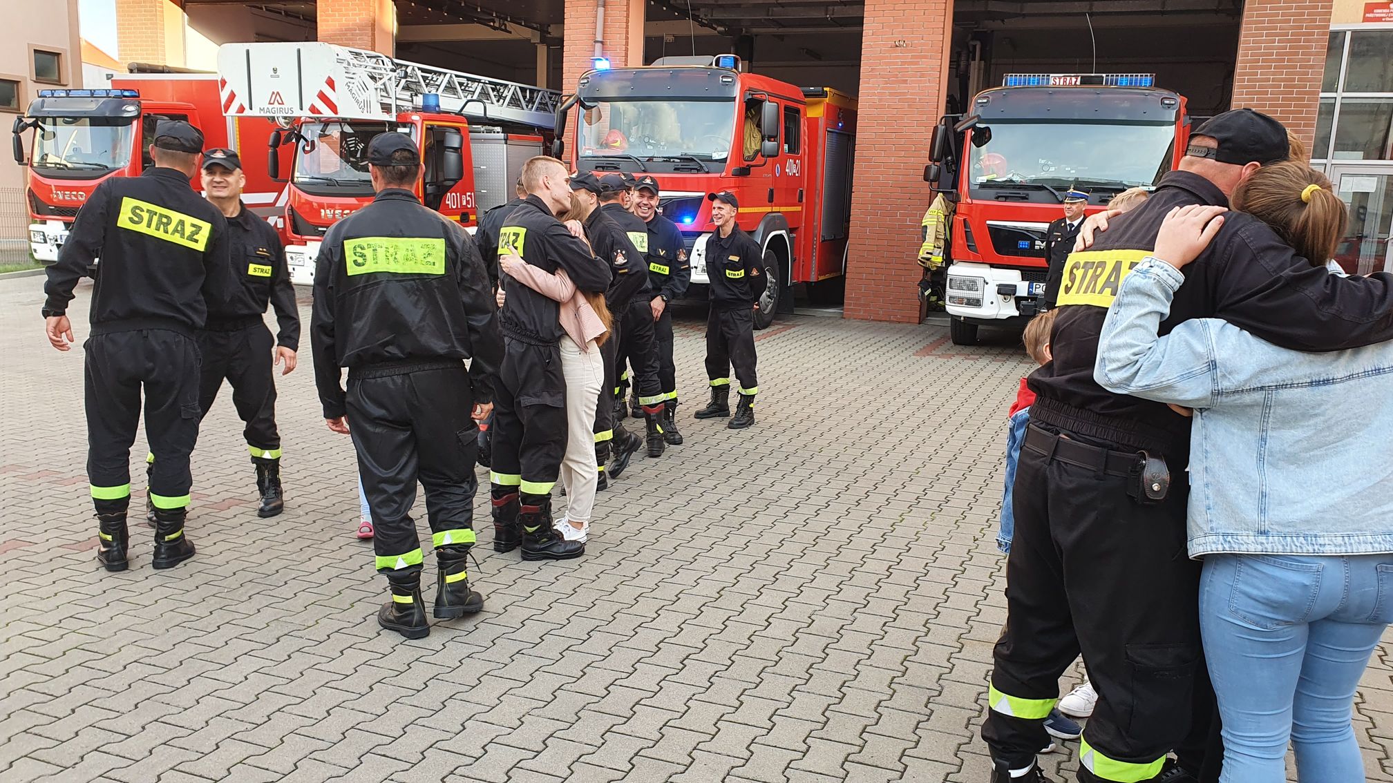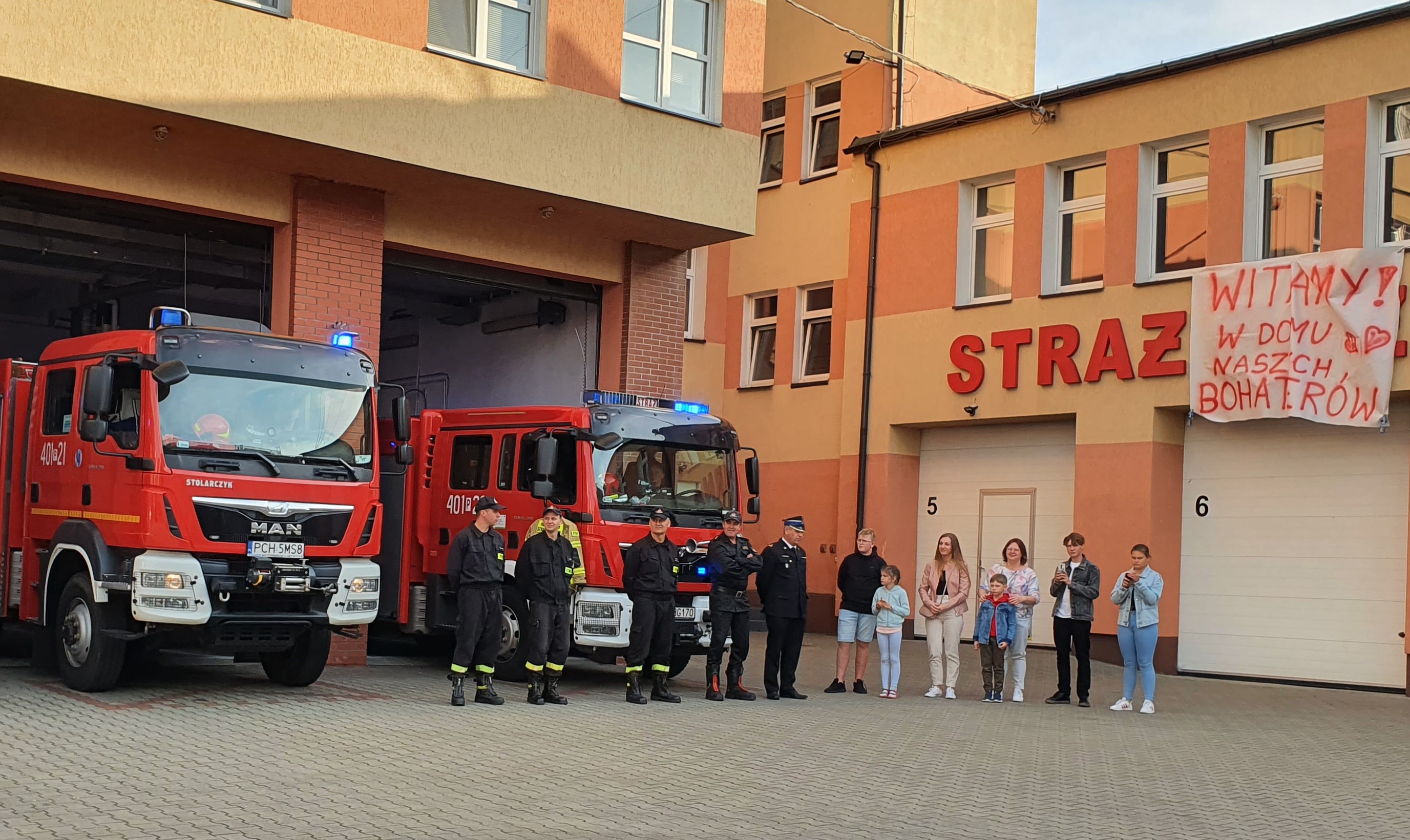 Z Chodzieży łącznie wyjechało 10 strażaków (5 w pierwszej turze oraz 5 w drugiej turze) oraz jeden ciężki samochód ratowniczo – gaśniczy. Przybyłych strażaków przywitali: Komendant Powiatowy Państwowej Straży Pożarnej w Chodzieży mł. bryg. Adam Grunwald, Dowódca JRG PSP st. kpt. Maciej Zwierzykowski wraz z z-cą kpt. Maciejem Nowakiem, zmiana służbowa JRG oraz rodziny strażaków.