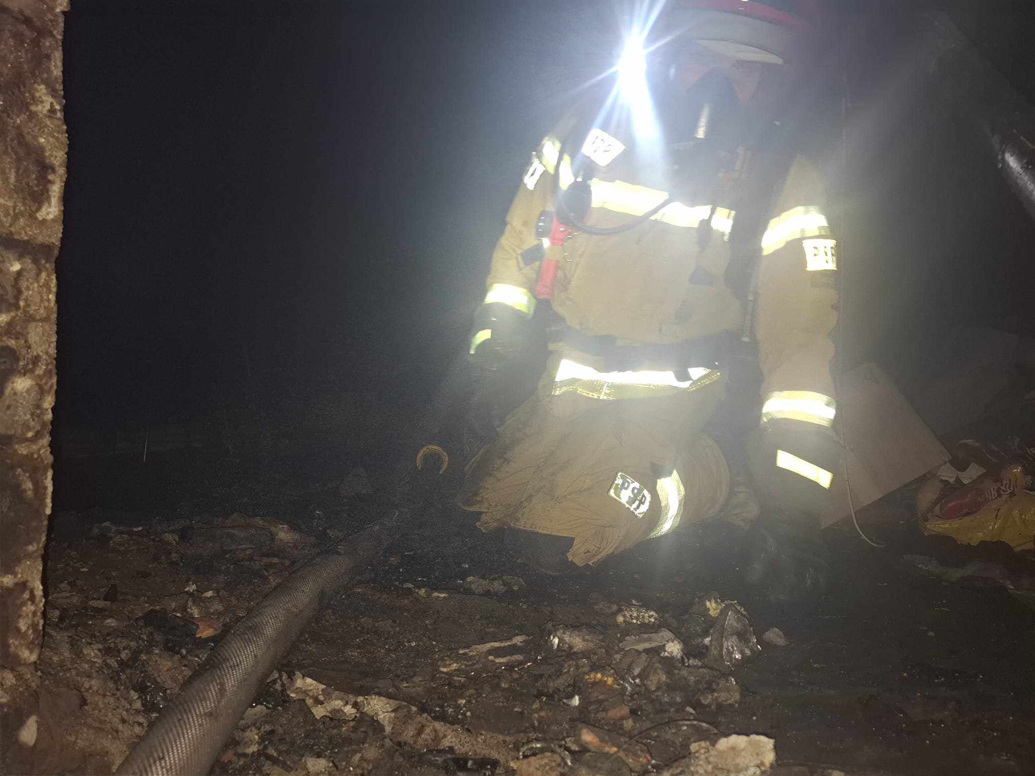 Działania straży pożarnej w pierwszej kolejności polegały na zabezpieczeniu miejsca zdarzenia, udzieleniu kwalifikowanej pierwszej pomocy kobiecie, podaniu prądów wody w natarciu na palący się dach zarówno z zewnątrz jak i od wewnątrz budynku. Dalsze działania polegały na dogaszaniu tlących się materiałów palnych. W wyniku pożaru spaleniu lub zniszczeniu uległo: część stropu budynku wraz z konstrukcją dachową i przekryciem dachu.