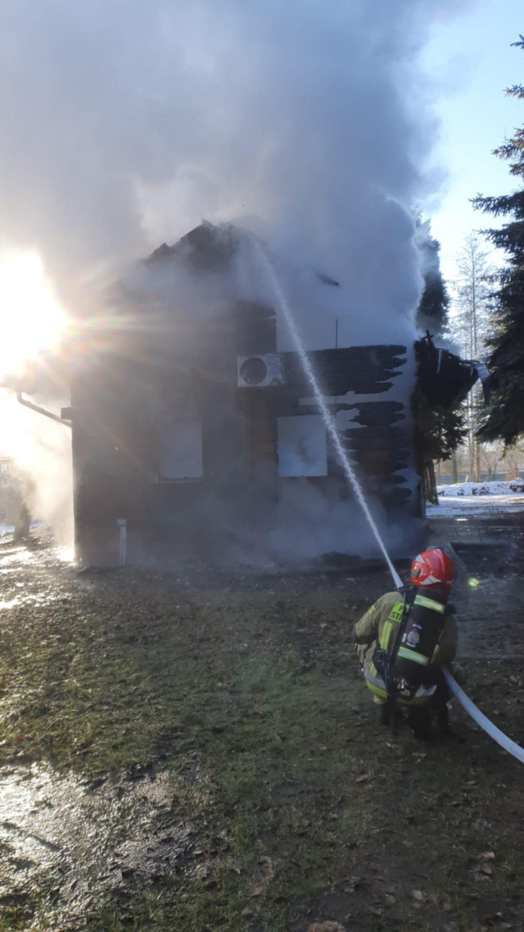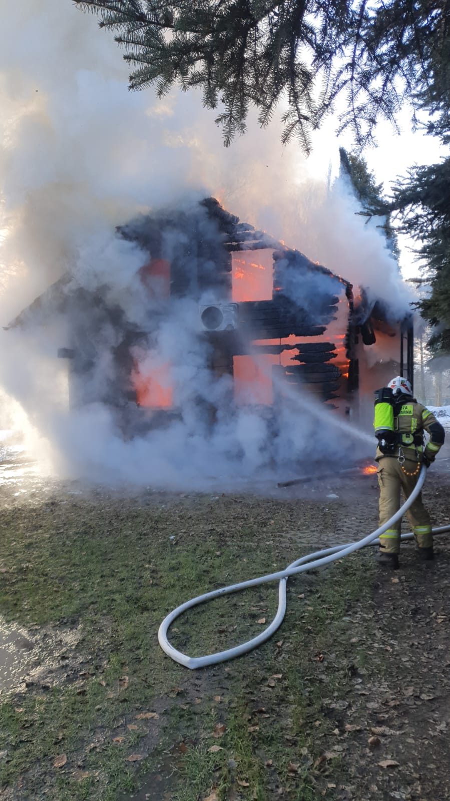 10 stycznia 2026 roku po godzinie dziewiątej Stanowisko Kierowania Komendanta Powiatowego Państwowej Straży Pożarnej w Chodzieży otrzymało informację poprzez Centrum Powiadamiania Ratunkowego o pożarze drewnianego domku letniskowego w miejscowości Sypniewo (gmina Margonin).