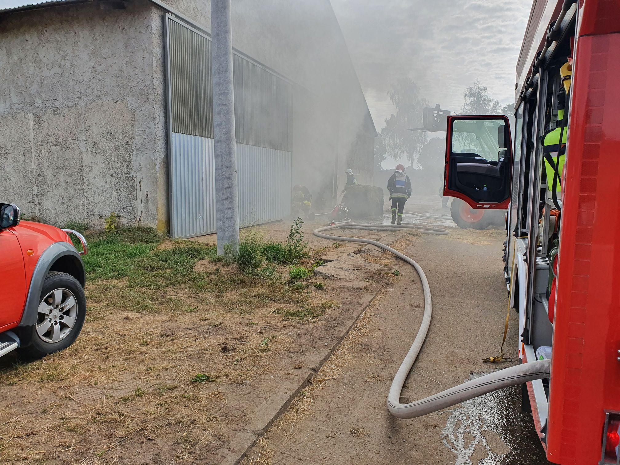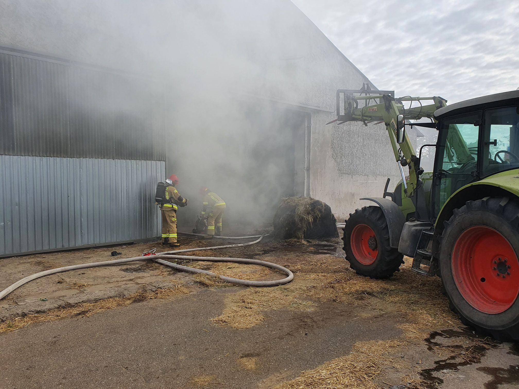 Na miejsce zadysponowano zastępy z JRG Chodzież, OSP Lipa Nowy Dwór oraz OSP Szamocin. Strażacy prowadzili działania w hali produkcyjno-magazynowej, w której palił się balot siana w maszynie do rozdrabniania. Podczas działań panowało duże zadymienie, konieczne było użycie sprzętu ochrony dróg oddechowych oraz kamery termowizyjnej. W kolejnej fazie działań właściciel gospodarstwa rolnego na polecenie KDR zadysponował ciężki sprzęt rolniczy przy pomocy którego wygarnięto nadpalone siano na zewnątrz hali, a następnie ponownie przelano wodą. Łącznie w działaniach trwających dwie i pół godziny brało udział 14 strażaków oraz 6 pojazdów pożarniczych. Nikt nie został poszkodowany.
