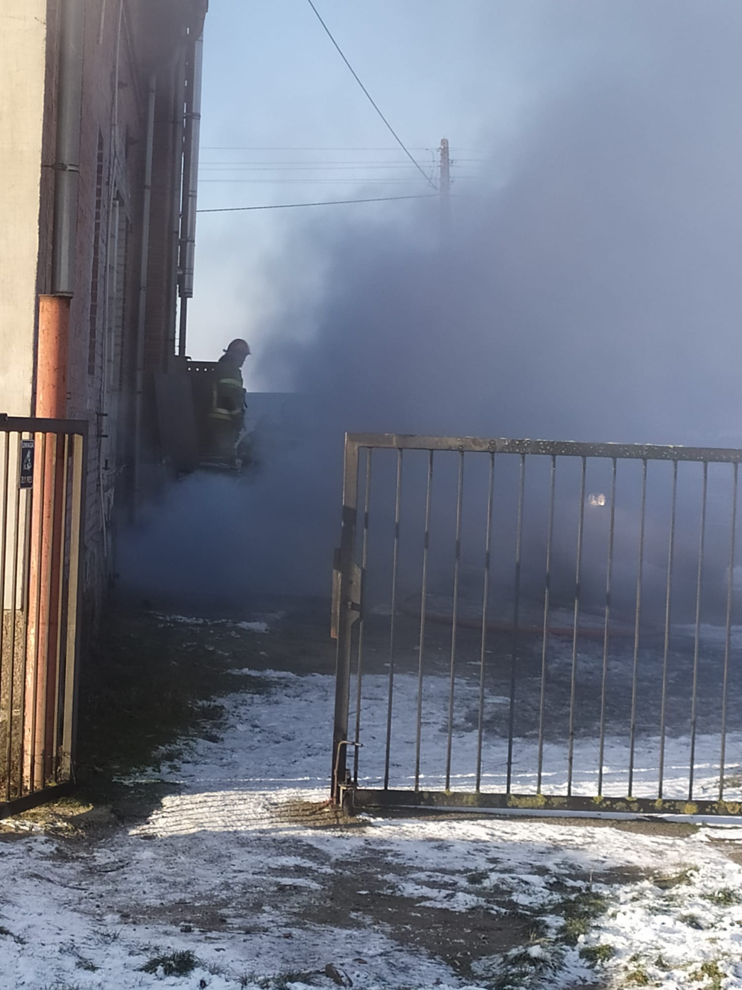 Zastana sytuacja na miejscu zdarzenia przez straż pożarną: z pomieszczenia piwnicznego kompleksu połączonych budynków: mieszkalnego wielorodzinnego i produkcyjno-usługowego wydobywa się gęsty dym. Wszystkie osoby ewakuowały się z budynków przed przybyciem Jednostek Ochrony Przeciwpożarowej – nikt nie został poszkodowany.