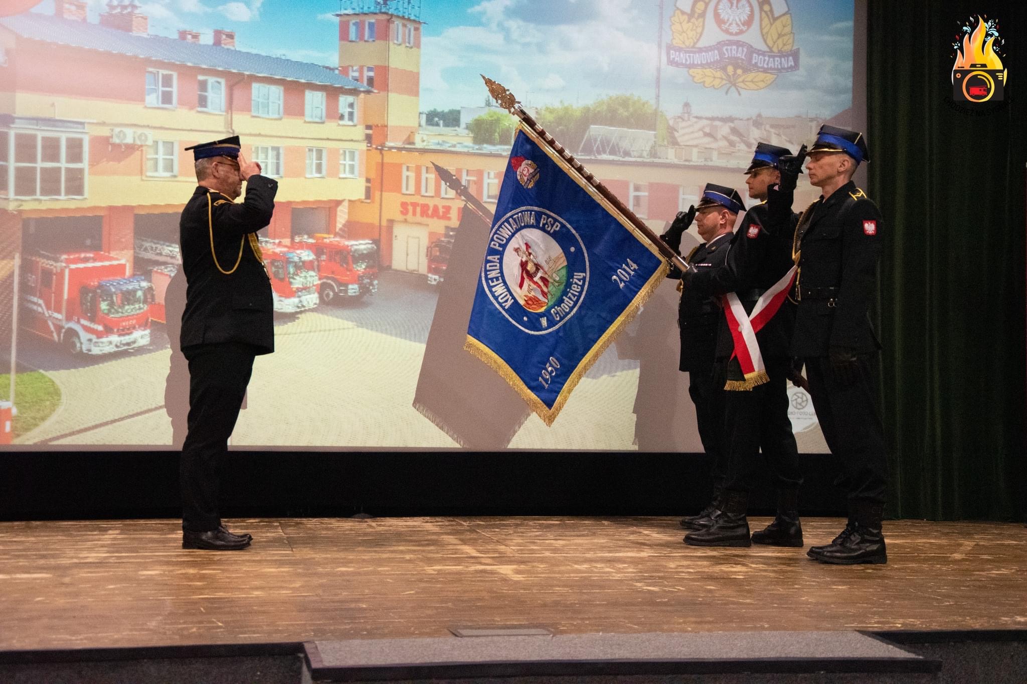 Po przeczytaniu rysów służby komendanta nastąpiło pożegnanie Komendanta ze sztandarem Komendy Powiatowej PSP w Chodzieży.