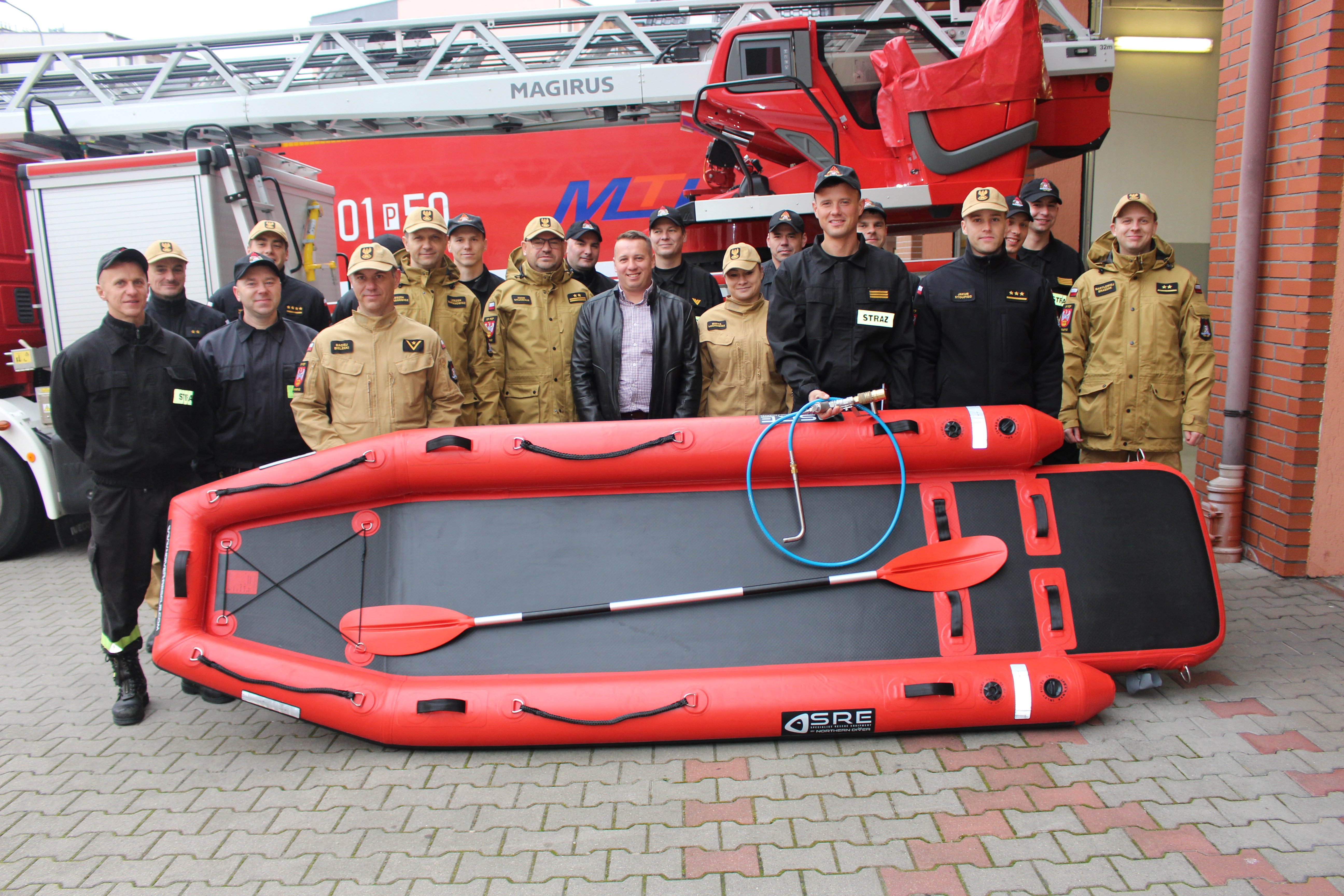 Przekazany sprzęt to sanie ratunkowe pneumatyczne RR 4 3.6 m oraz lanca gaśnicza kominowa mgłowa. W uroczystym przekazaniu uczestniczył Komendant Powiatowy Państwowej Straży Pożarnej w Chodzieży bryg. Adam Grunwald wraz z zastępcą i kadrą dowódczą oraz ze strażakami dwóch zmian służbowych. Komendant Powiatowy podziękował Panu Grzegorzowi Kuchta przedsiębiorcy z terenu powiatu chodzieskiego za wsparcie chodzieskiej komendy w w/w sprzęt ratowniczy i gaśniczy. Ponadto podziękowania zostały skierowane do Pana Artura Krasnopolskiego – funkcjonariusza tutejszej komendy, który w znacznym stopniu przyczynił się do pozyskania przekazywanego sprzętu.