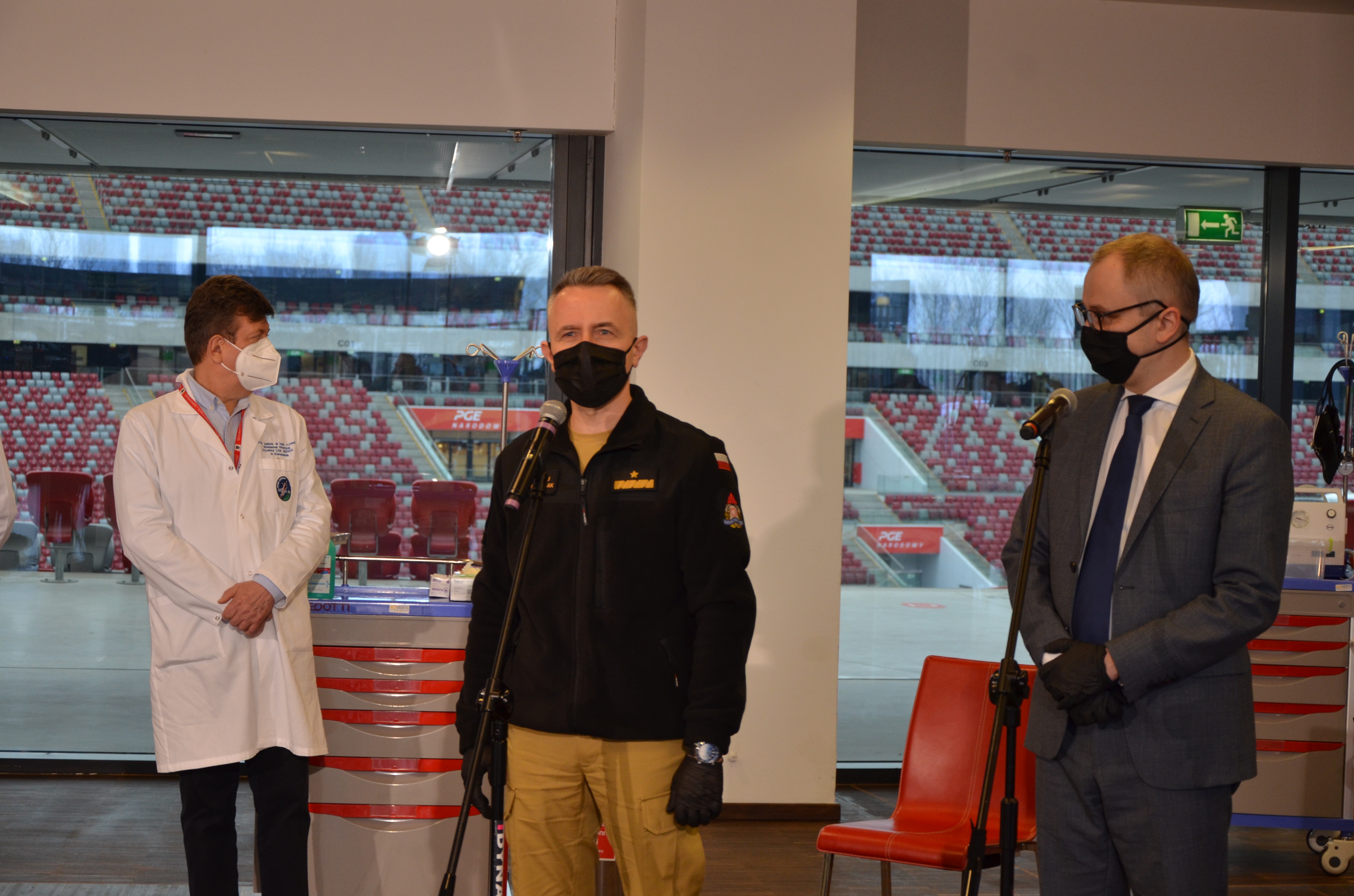 24 marca 2021 r. o godzinie 14.00 w szpitalu tymczasowym na PGE Narodowym rozpoczął się proces szczepień przeciw COVID-19 dla grupy 1C „służby mundurowe".