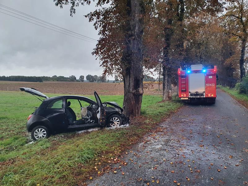 W sobotę 27 września, w Konstantynowie, około godz. 16:52 samochód osobowy marki Ford KA, którym podróżowały dwie osoby, zjechał z drogi, uderzył w drzewo i po chwili zaczął się palić.