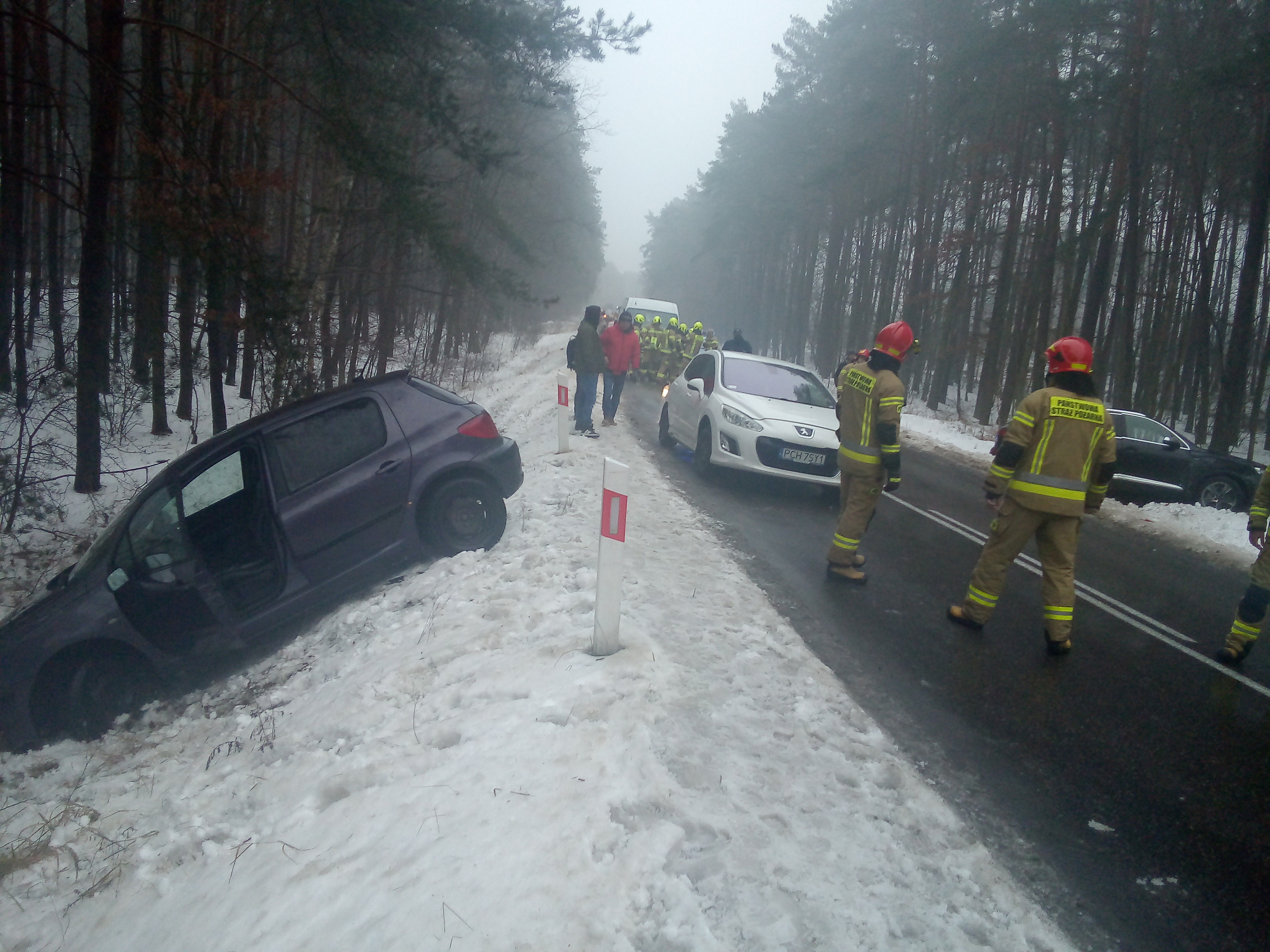 Zadysponowano zastępy z Jednostki Ratowniczo - Gaśniczej PSP z Chodzieży, OSP KSRG Szamocin oraz Policję. Po przybyciu na miejsce zdarzenia stwierdzono, że w pobliżu łuku drogi w rowie znajdują się trzy samochody osobowe, a czwarty pojazd uszkodzony stoi na jednym pasie ruchu. Zdarzenie miało miejsce przy miejscowości Szamocin. Droga w miejscu zdarzenia była bardzo śliska z powodu panującej ujemnej temperatury (droga oblodzona). Nikt z uczestników zdarzenia nie został poszkodowany. Na miejsce przybyła Policja, która kierowała ruchem drogowym. Zadysponowano solarkę w celu posypania oblodzonej nawierzchni drogi. Droga wojewódzka na czas działań była całkowicie zablokowana. Okazało się, że jeden z pojazdów osobowych, który znajdował się w rowie nie uczestniczył w zdarzeniu (właściciel pozostawił go w wyniku zjechania do rowu kilka godzin wcześniej).