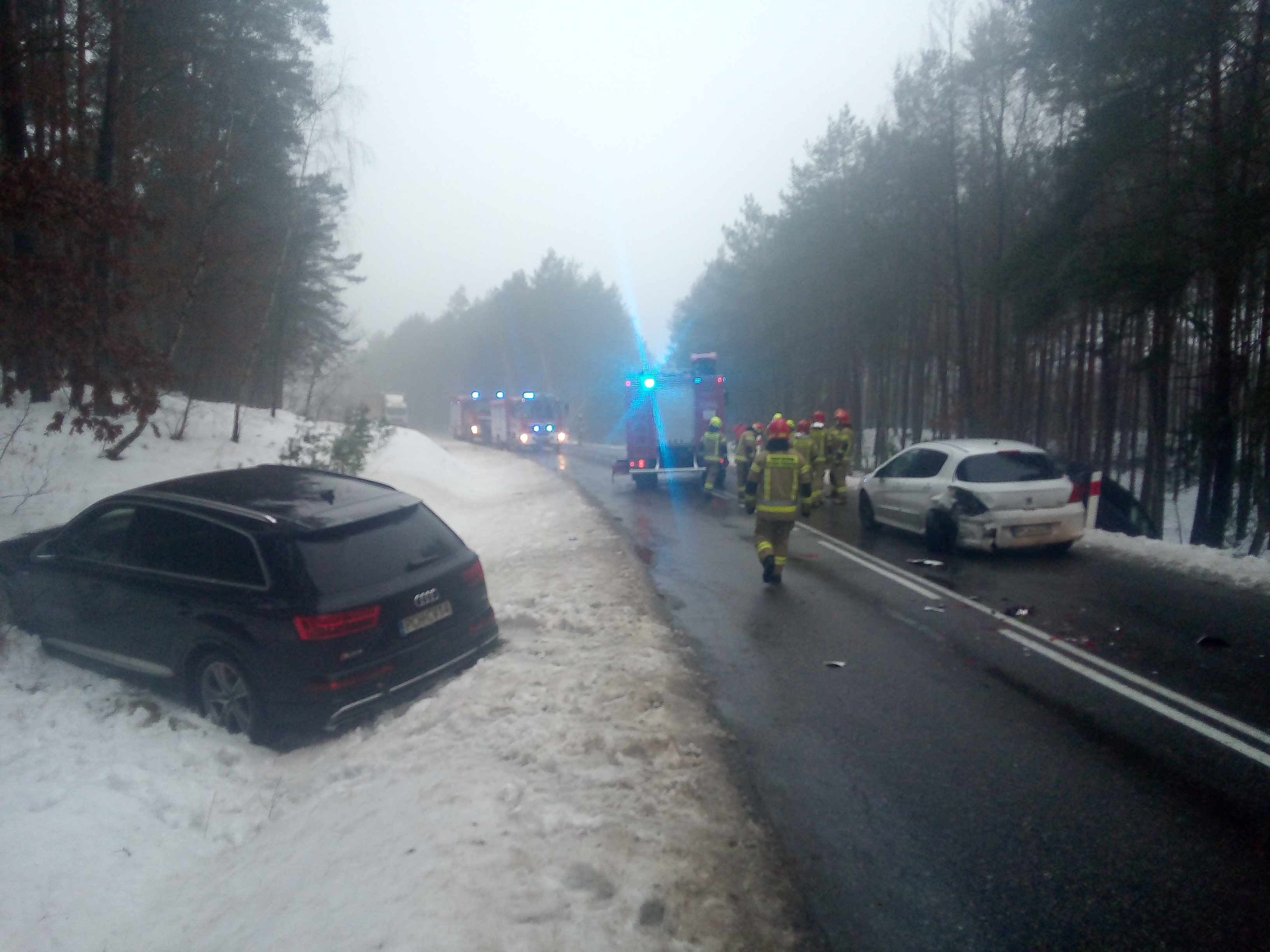W działaniach trwających blisko dwie godziny brały udział 4 zastępy straży pożarnej (13 strażaków), Policja, pomoc drogowa oraz pługosolarka zarządcy drogi.