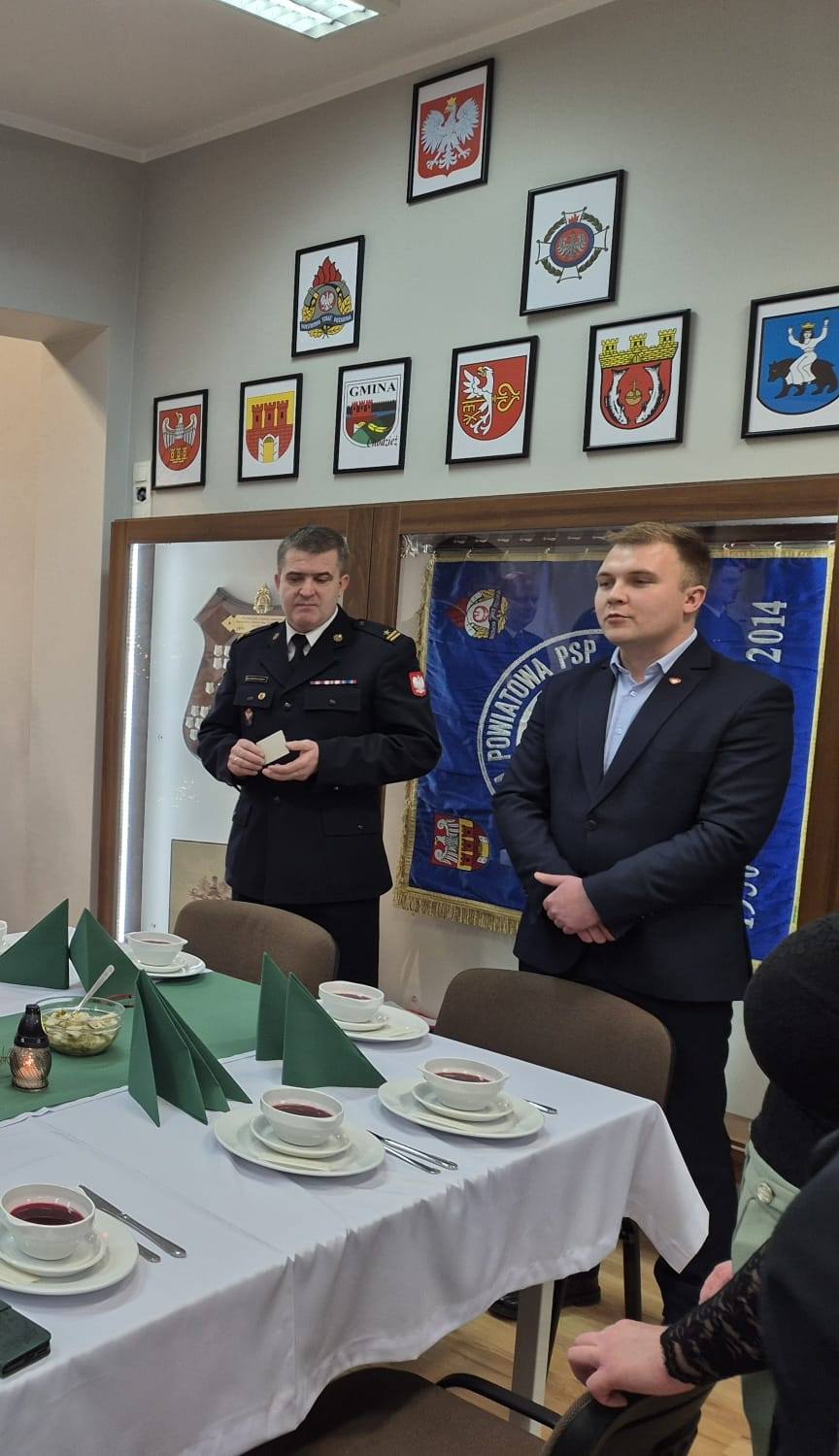 20 grudnia 2024 roku odbyło się uroczyste spotkanie Wigilijne załogi Komendy Powiatowej Państwowej Straży Pożarnej w Chodzieży, podczas którego Komendant Powiatowy PSP w Chodzieży - mł. bryg. Maciej Zwierzykowski wraz ze Starostą Powiatu Chodzieskiego Panem Adrianem Urbańskim złożyli funkcjonariuszom i pracownikom służby cywilnej życzenia z okazji zbliżających się Świat Bożego Narodzenia.