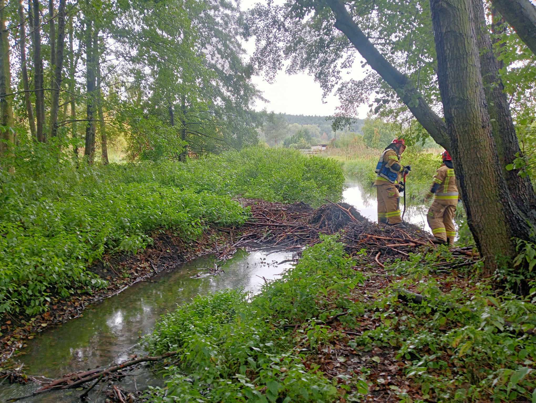 Podjęto decyzję o wezwaniu na miejsce zdarzenia WIOŚ (Wojewódzki Inspektorat Ochrony Środowiska) z delegaturą w Pile, Specjalistyczną Grupę Ratownictwa Chemiczno - Ekologicznego, Wody Polskie oraz Zarządzanie Kryzysowe Miasta Chodzieży. Po przybyciu w/w służb i instytucji kontynuowano działania ratownicze, polegające w dalszej kolejności na kontynuowania zabezpieczania ujścia do jeziora Miejskiego rękawami sorpcyjnymi, zbieraniu oleju napędowego z powierzchni wody za pomocą specjalistycznego separatora do ratownictwa ekologicznego. Ponadto z pomocą Wodnego Ochotniczego Pogotowia Ratunkowego przy użyciu łodzi motorowej WOPR sprawdzono taflę wody jeziora Miejskiego pod kątem zanieczyszczenia - brak filmu na wodzie przy ujściu cieku do jeziora. Na miejsce przybyli również pracownicy Zespołu Zarządzania Kryzysowego Urzędu Miasta Chodzieży oraz Z-ca Burmistrza Miasta Chodzieży Pan Piotr Witkowski, którzy zorganizowali kolejne snopki słomy, kontener do zbierania zanieczyszczonych snopków słomy i siana, pojemnik na zabrudzoną wodę (DDPL 1000 l) oraz na odseparowaną substancję ropopochodną. Na zakończenie działań w dniu 3 października br. w rowie melioracyjnym pozostawiono materiały sorpcyjne (słoma, siano, rękawy sorpcyjne) w celu zebrania resztek oleju napędowego. W dniu następnym, tj. 4 października br. od godziny 10:00 kontynuowano działania polegające na dalszym zabezpieczaniu rowu melioracyjnego i zbieraniu z powierzchni wody słomy i siana nasiąkniętej substancją ropopochodną.