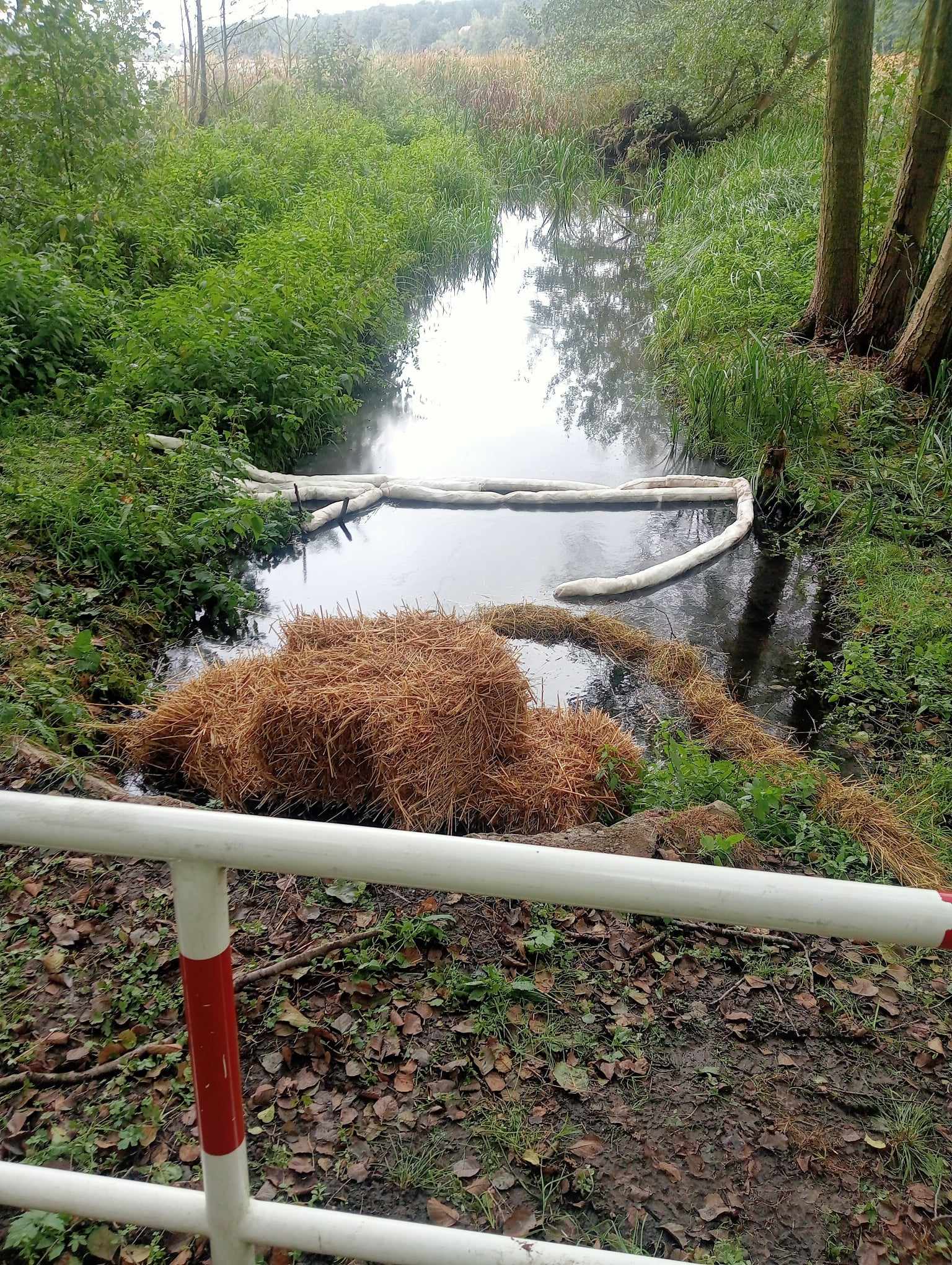Stwierdzono, że prawdopodobnie substancja ropopochodna dostała się do rowu melioracyjnego przez kanalizację deszczową w wyniku wypadku drogowego - uszkodzenia i wycieku oleju napędowego z baku samochodu ciężarowego, który miał miejsce w godzinach porannych 3 października br. na trasie DK-11.