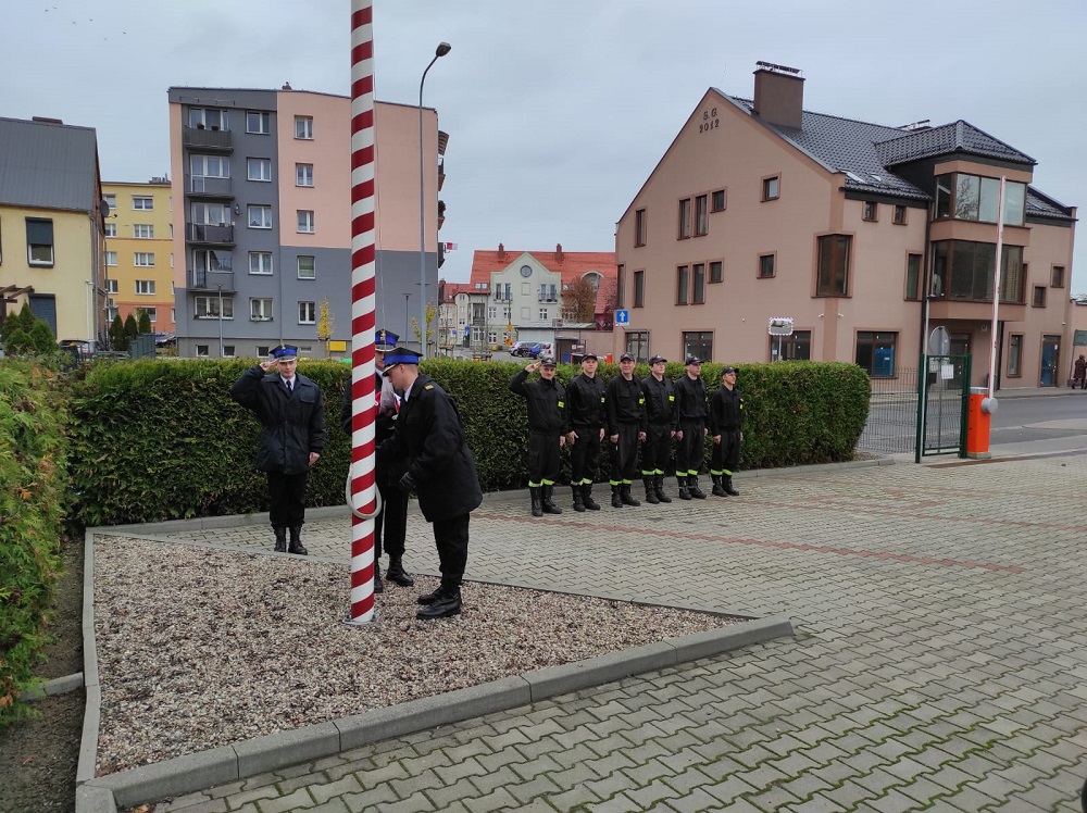 W piątek 11 listopada z okazji Narodowego Święta Niepodległości na placu Komendy Powiatowej Państwowej Straży Pożarnej w Chodzieży zmiana pełniąca służbę uroczyście podniosła flagę państwową na maszt.