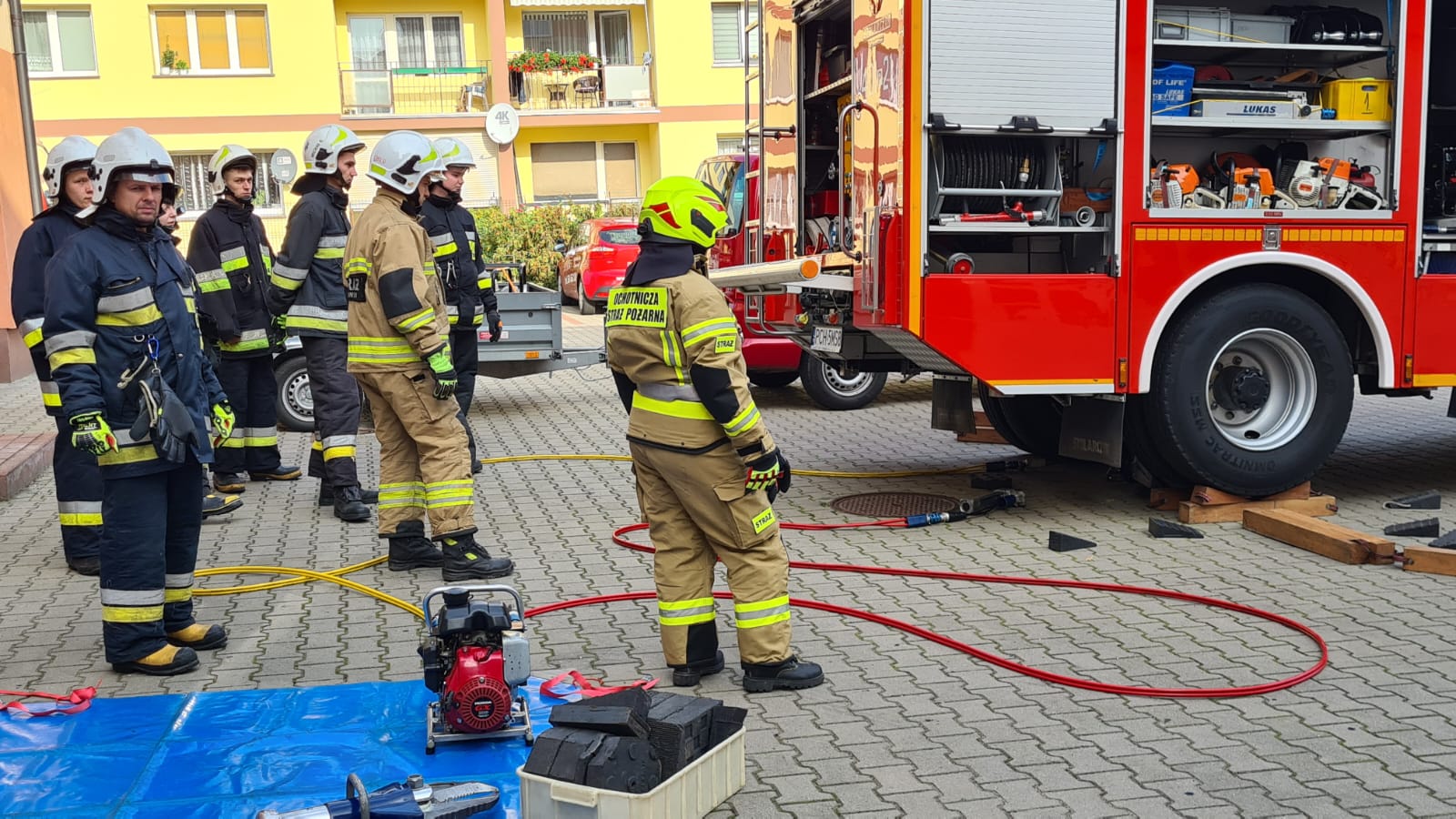 Ponadto zawsze każde zajęcia są poprzedzone instruktażem z zasad bezpieczeństwa i higieny pracy oraz omawiane są środki ochrony indywidualnej strażaka - ratownika.