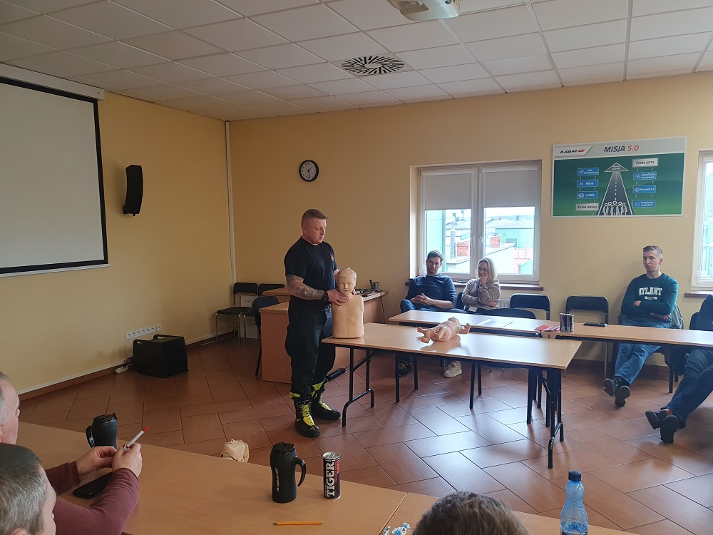 Strażacy w ramach prewencji społecznej na zaproszenie firmy KABAT TYRE z Budzynia przeprowadzili cykl zajęć na temat udzielania kwalifikowanej pierwszej pomocy przedmedycznej dla pracowników zakładu. W dwóch terminach przeszkolono prawie 100 pracowników. Osoby biorące udział w szkoleniu mogły przećwiczyć zdobyte umiejętności na fantomach szkoleniowych. Zdobyta wiedza i umiejętności przyczynią się znacznie do zwiększenia bezpieczeństwa na terenie zakładu.