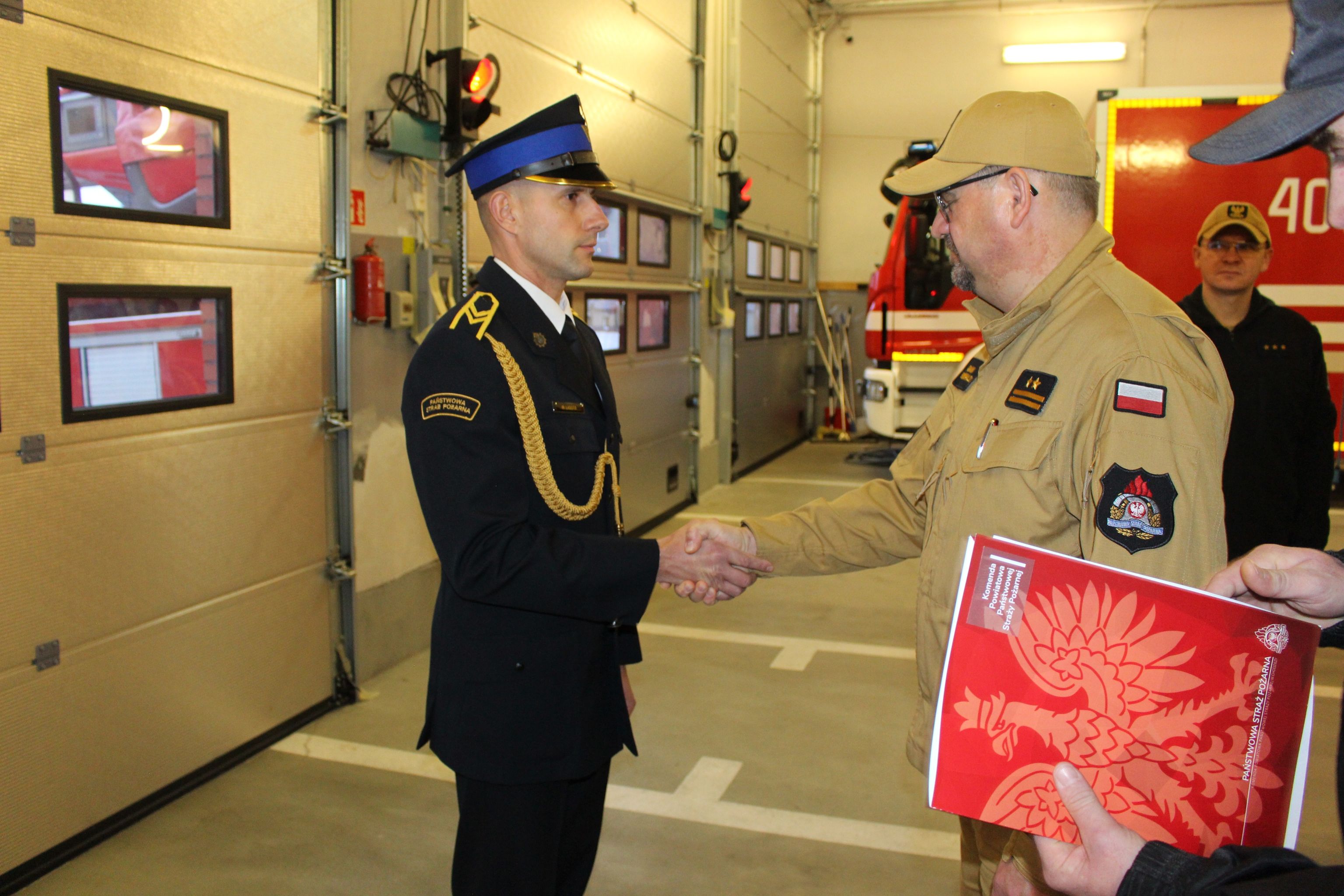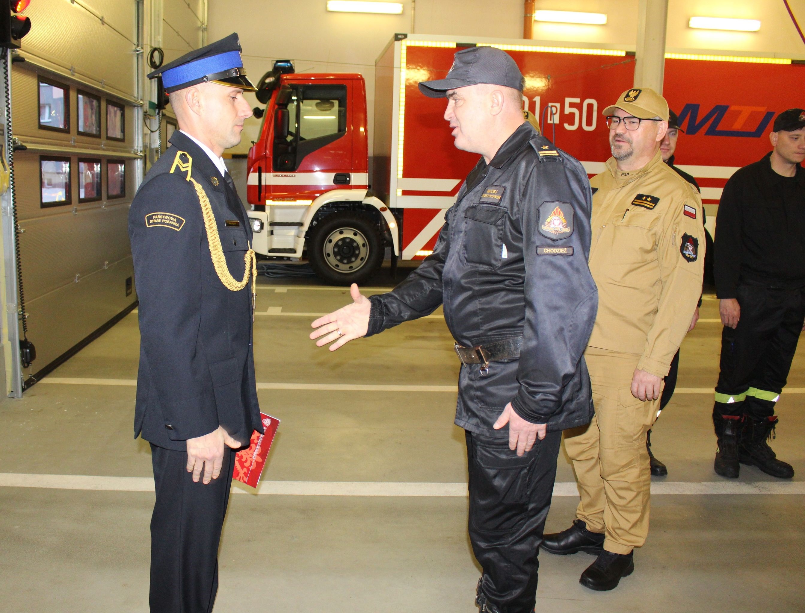Decyzję nagrody jubileuszowej st. ogn. Waldemarowi Lasocie wręczył osobiście Komendant Powiatowy Państwowej Straży Pożarnej w Chodzieży bryg. Adam Grunwald, który podziękował wyróżnionemu za ofiarną i profesjonalną służbę oraz za duże zaangażowanie w realizację zadań i obowiązków służbowych.