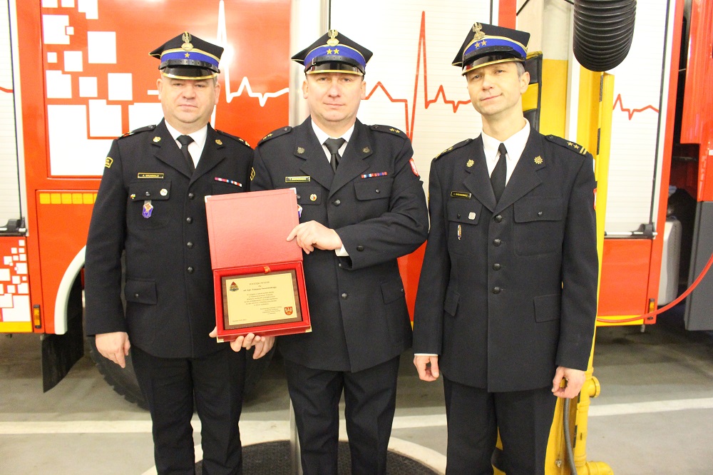 Za swoją długoletnią służbę mł. kpt. Tomasz Sworowski został uhonorowany Brązową Odznaką „Zasłużony dla Ochrony Przeciwpożarowej”.