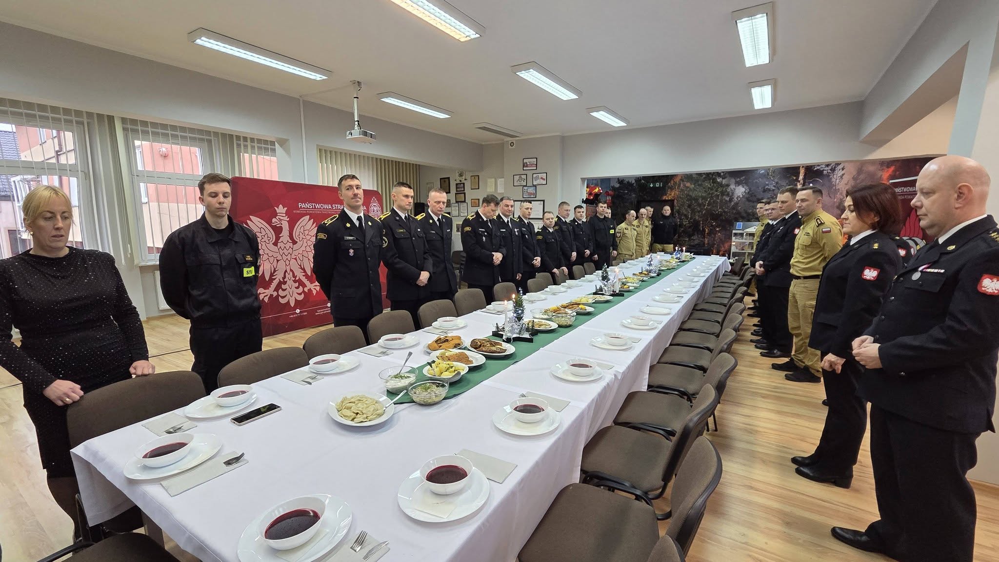 22 grudnia 2025 roku odbyło się uroczyste spotkanie Wigilijne załogi Komendy Powiatowej Państwowej Straży Pożarnej w Chodzieży, podczas którego Komendant Powiatowy PSP w Chodzieży - mł. bryg. Maciej Zwierzykowski wraz z Zastępcą bryg. Leszkiem Naranowiczem złożyli funkcjonariuszom i pracownikom służby cywilnej życzenia z okazji zbliżających się Świat Bożego Narodzenia.