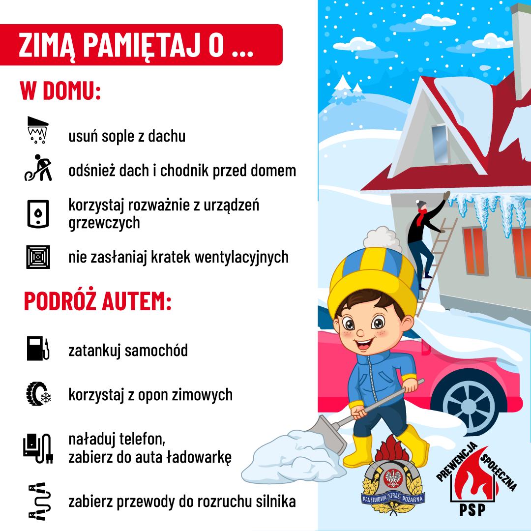 Na terenie całego kraju utrzymuje się zimowa aura. Państwowa Straż Pożarna przypomina o zagrożeniach podczas okresu zimowego takich jak zamarznięte akweny, mróz czy śnieg i lód na dachach.