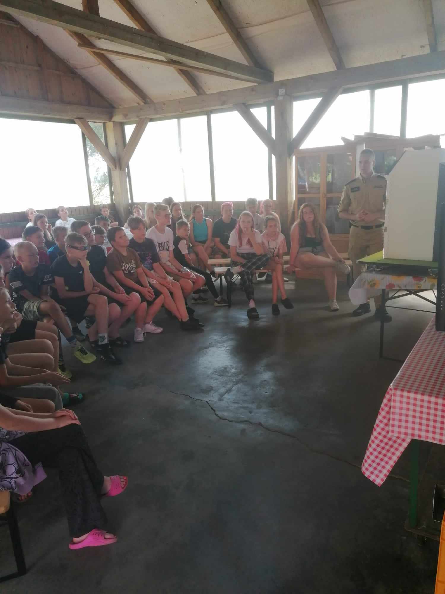 Kolejnym tematem zanęć było bezpieczne zachowywanie się w czasie wypoczynku letniego, w tym zagrożenia jakie występują na strzeżonych i niestrzeżonych akwenach wodnych. Poza tym przybliżone zostały m.in. tematy związane z zagrożeniami występującymi w domach i miejscach zamieszkania zbiorowego. Ciekawymi zajęciami była prezentacja „Mobilnego symulatora zagrożeń pożarowych”. W zajęciach, które miały miejsce w miejscowości Kamienica (powiat wągrowiecki) brało udział 50 uczestników obozu oraz 4 opiekunów.