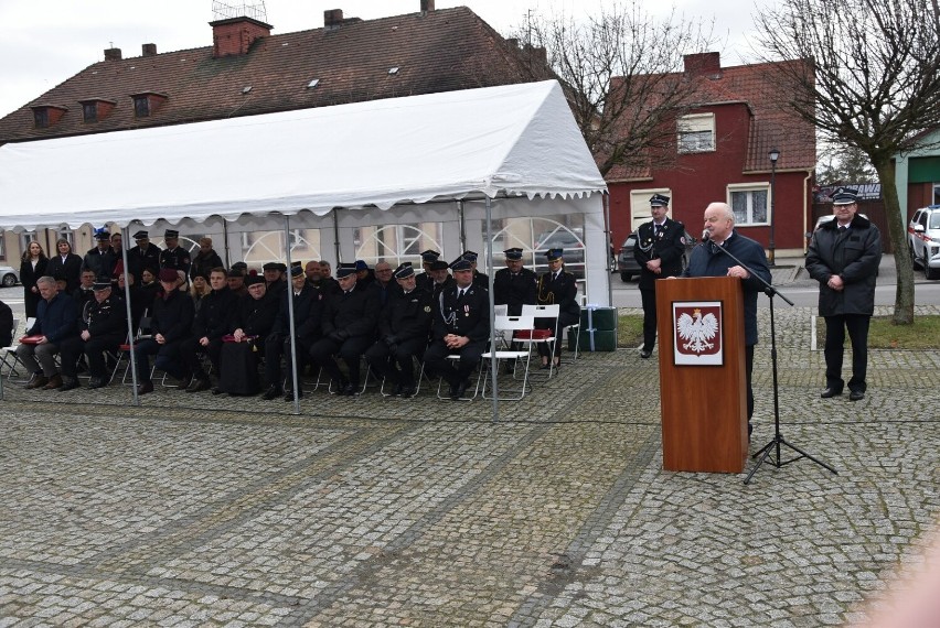 Prezes OSP w Budzyniu dh Paweł Sell oraz gospodarz gminy Burmistrz Miasta i Gminy w Budzyniu Pan Marcin Sokołowski, przywitali szanownych gości i podziękowali za wsparcie i pomoc w pozyskaniu pojazdu.