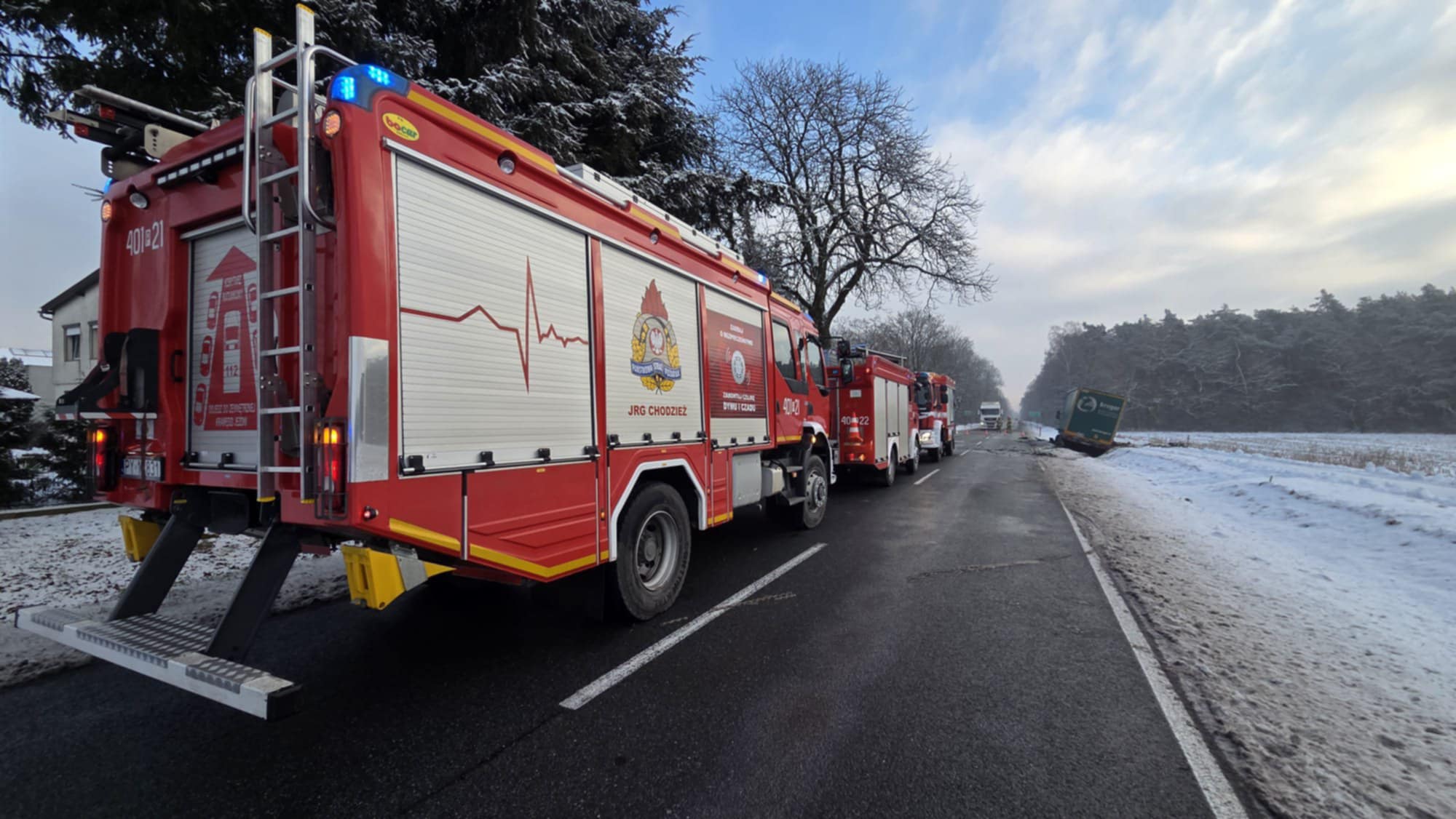 28 stycznia 2026 roku o godzinie 08:36 Stanowisko Kierowania Komendanta Powiatowego Państwowej Straży Pożarnej w Chodzieży otrzymało informację poprzez Centrum Powiadamiania Ratunkowego o wypadku samochodów: osobowego z ciężarowym na drodze wojewódzkiej DW 193 w miejscowości Studźce – są osoby poszkodowane.