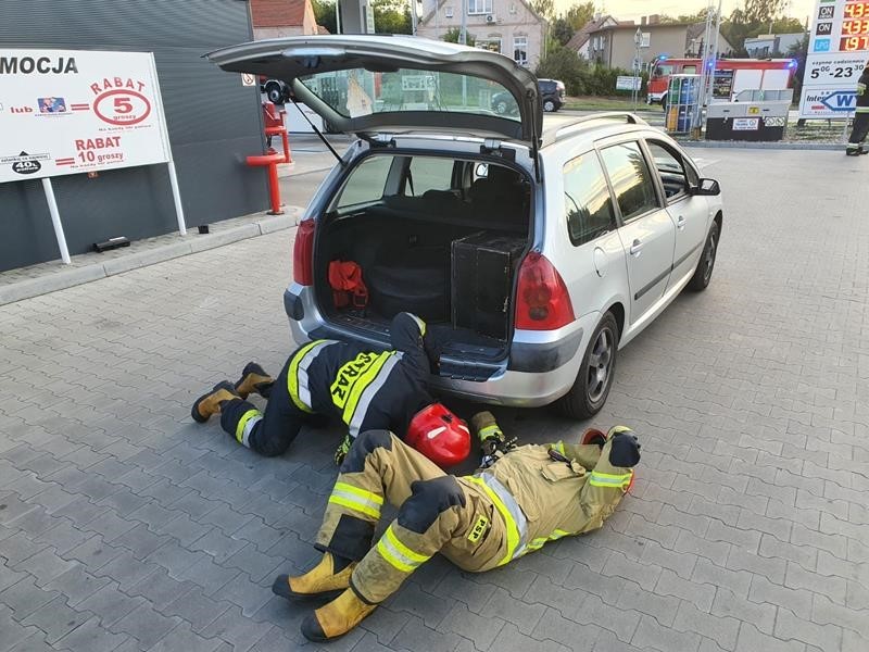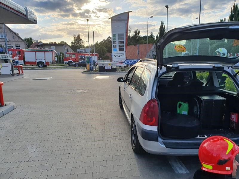 WYPŁYW GAZU Z SAMOCHODU, NA STACJI PALIW W CHODZIEŻY.